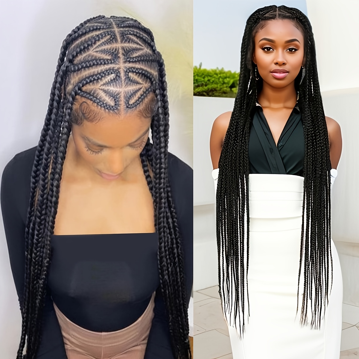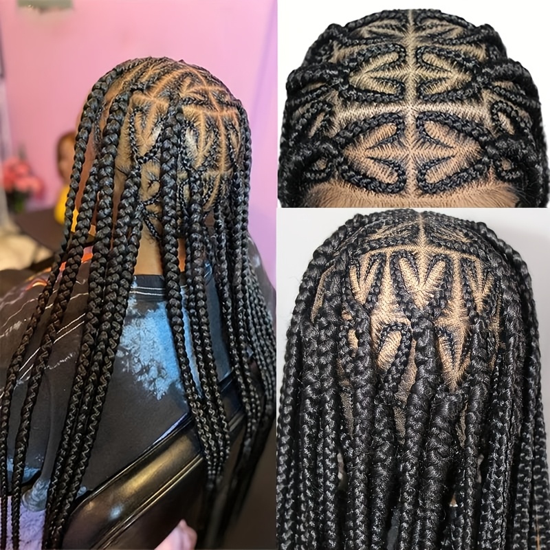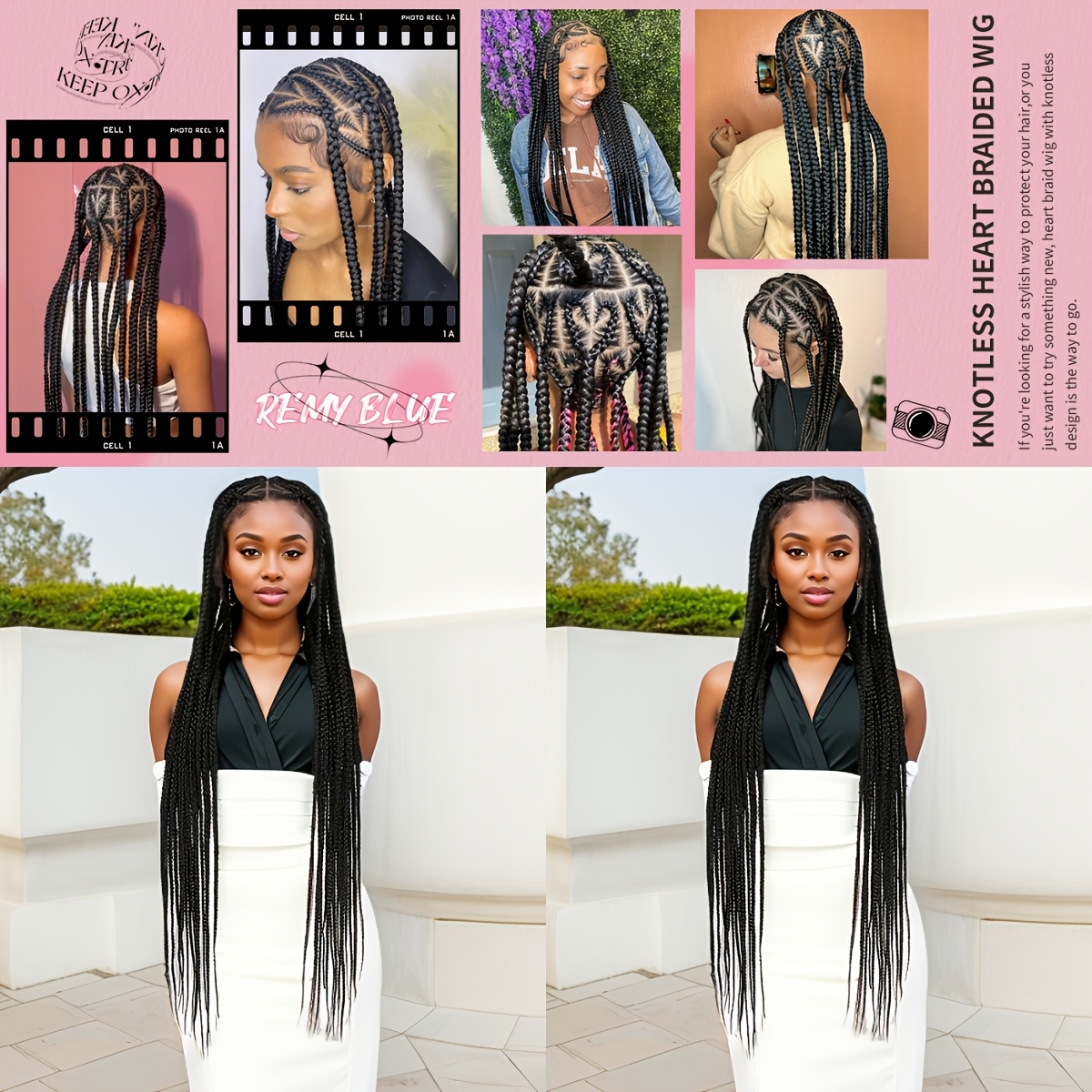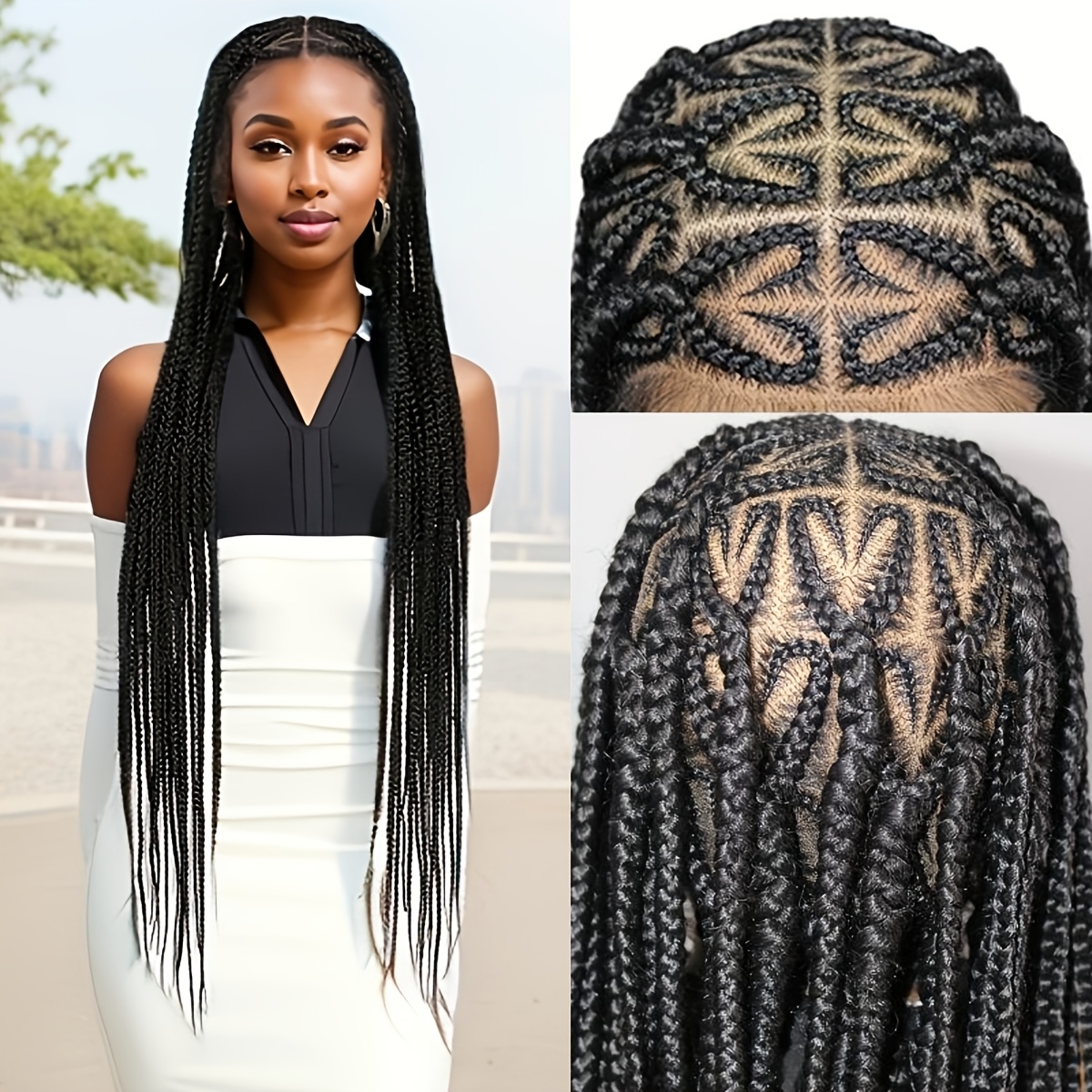 Heat Resistant Full Lace Grooved Heart Knotless Cornrow Braid Wig - 200% Density Straight Synthetic Hair for, Sporty Style & All Ethnicities, Protective Hairstyles | Highquality Synthetic
