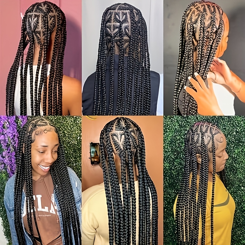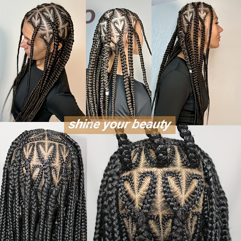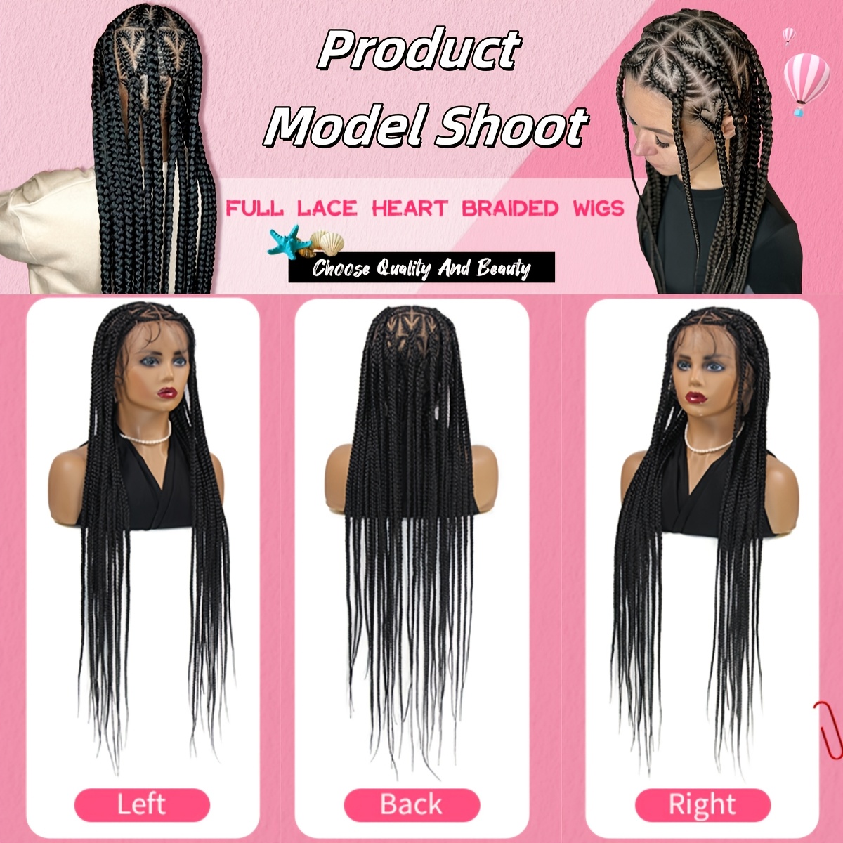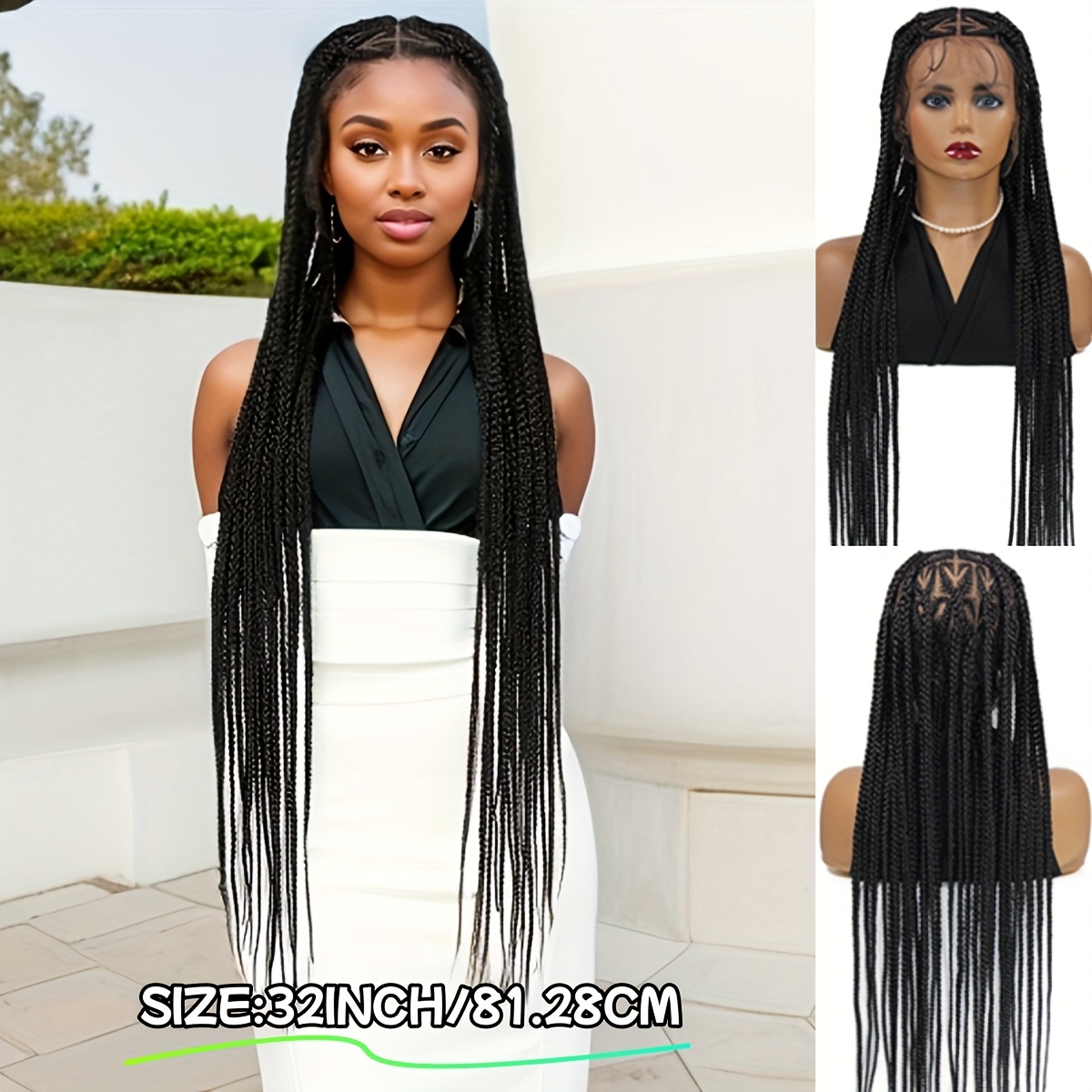 Heat Resistant Full Lace Grooved Heart Knotless Cornrow Braid Wig - 200% Density Straight Synthetic Hair for, Sporty Style & All Ethnicities, Protective Hairstyles | Highquality Synthetic