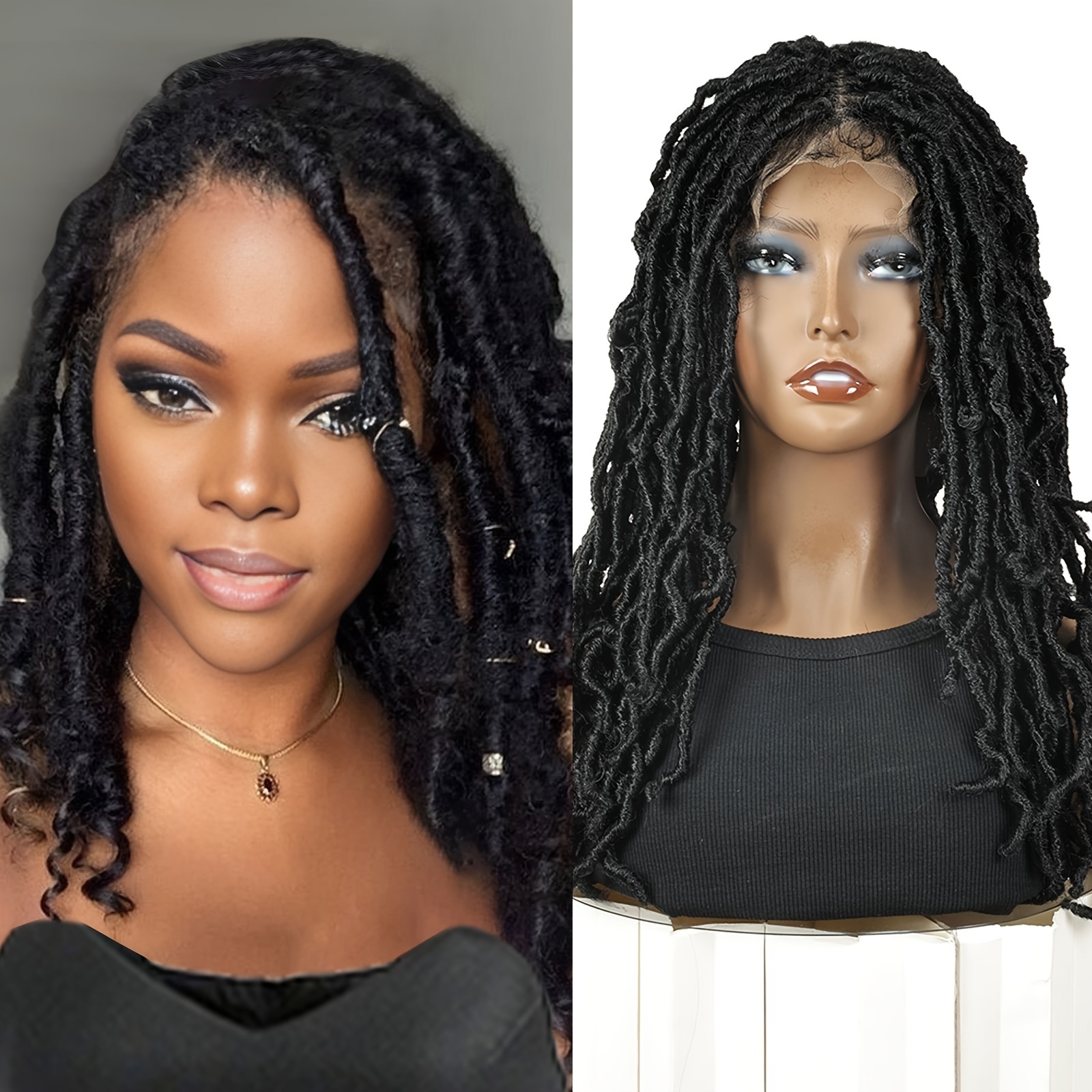 Knotless Braided Wigs Faux Locs Wigs for Women Handmade Full Double Lace Front Braid Wigs Synthetic Lace Frontal Wig Braid Hair Wig 22 Inch