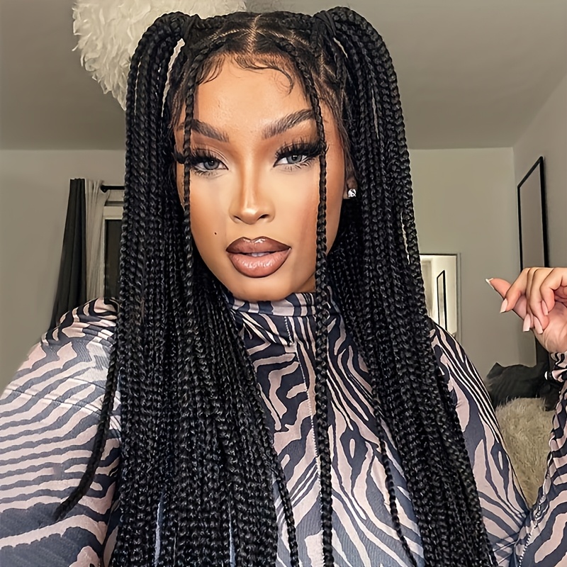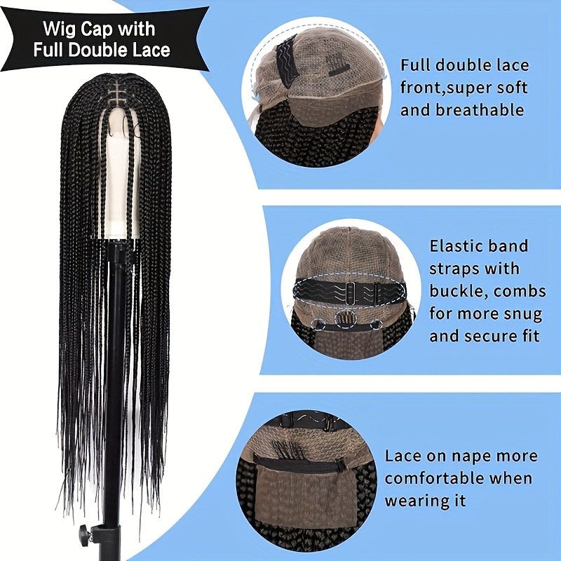 Latest Style Full Double Lace Front Braid Wig for Women - Hand Braided, Knotless Cornrow Braids, Blended Black Hair, Natural Looking, Breathable, Comfortable