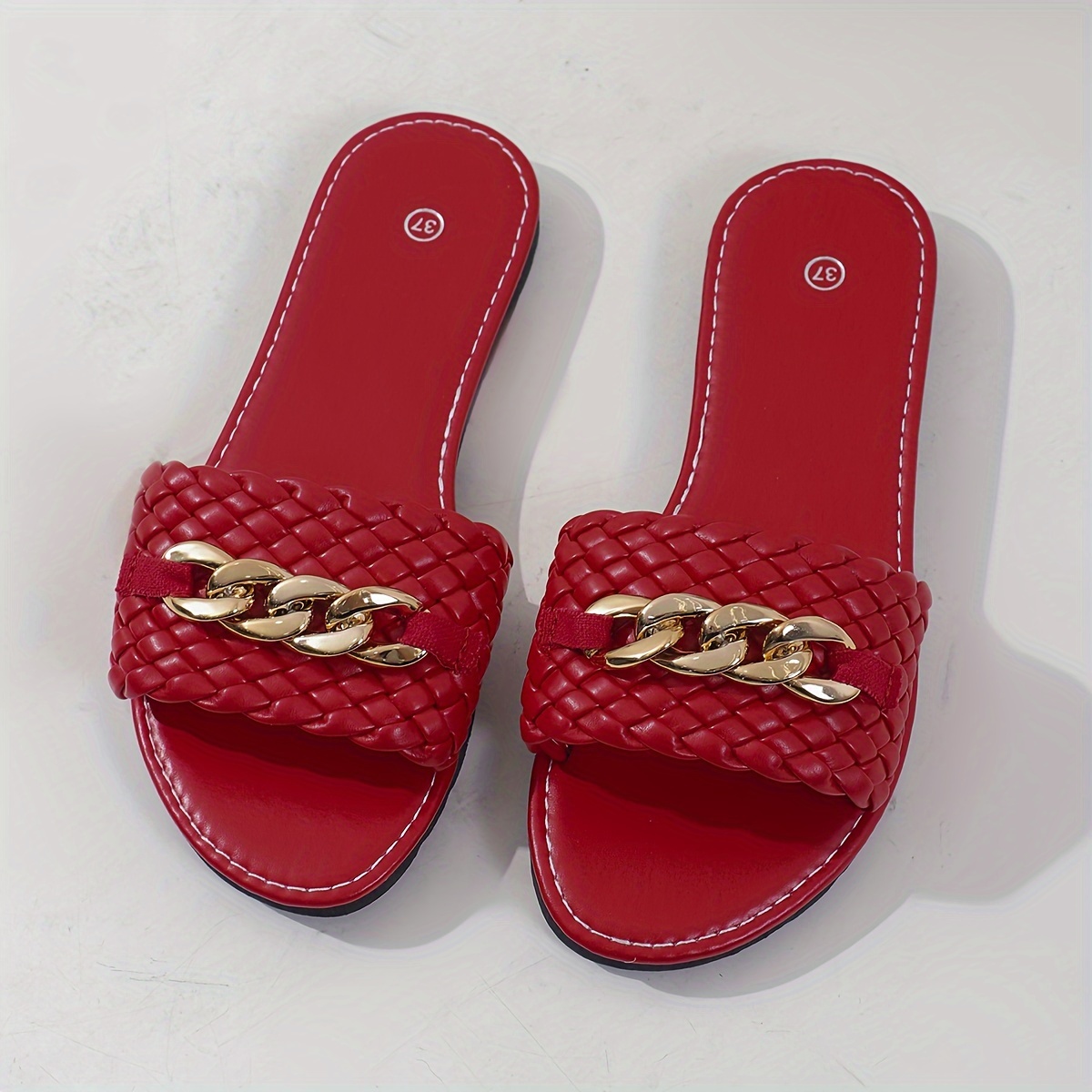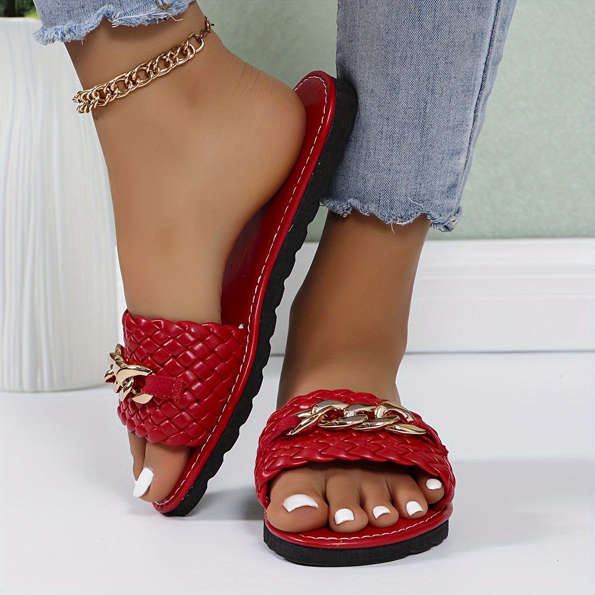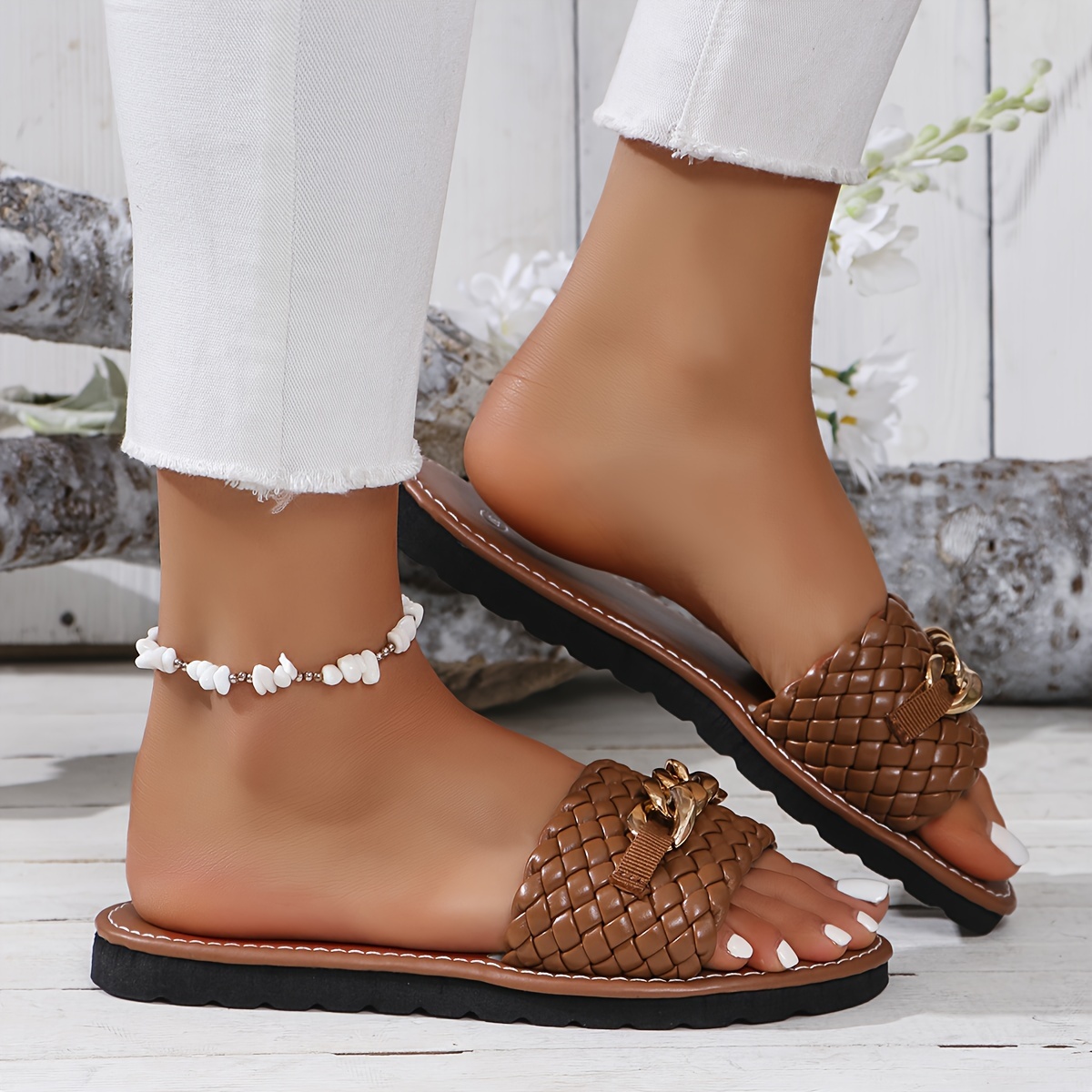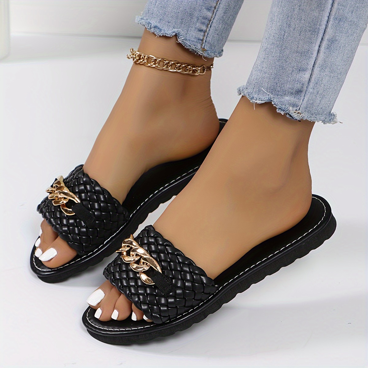 Women's Chain Decor Slide Sandals - Casual Open Toe Flat Summer Shoes, Lightweight Braided Slide Sandals - For Women - Perfect for Summer Beach, Vacation & Casual Wear - Ideal Gift for Fashionable Women