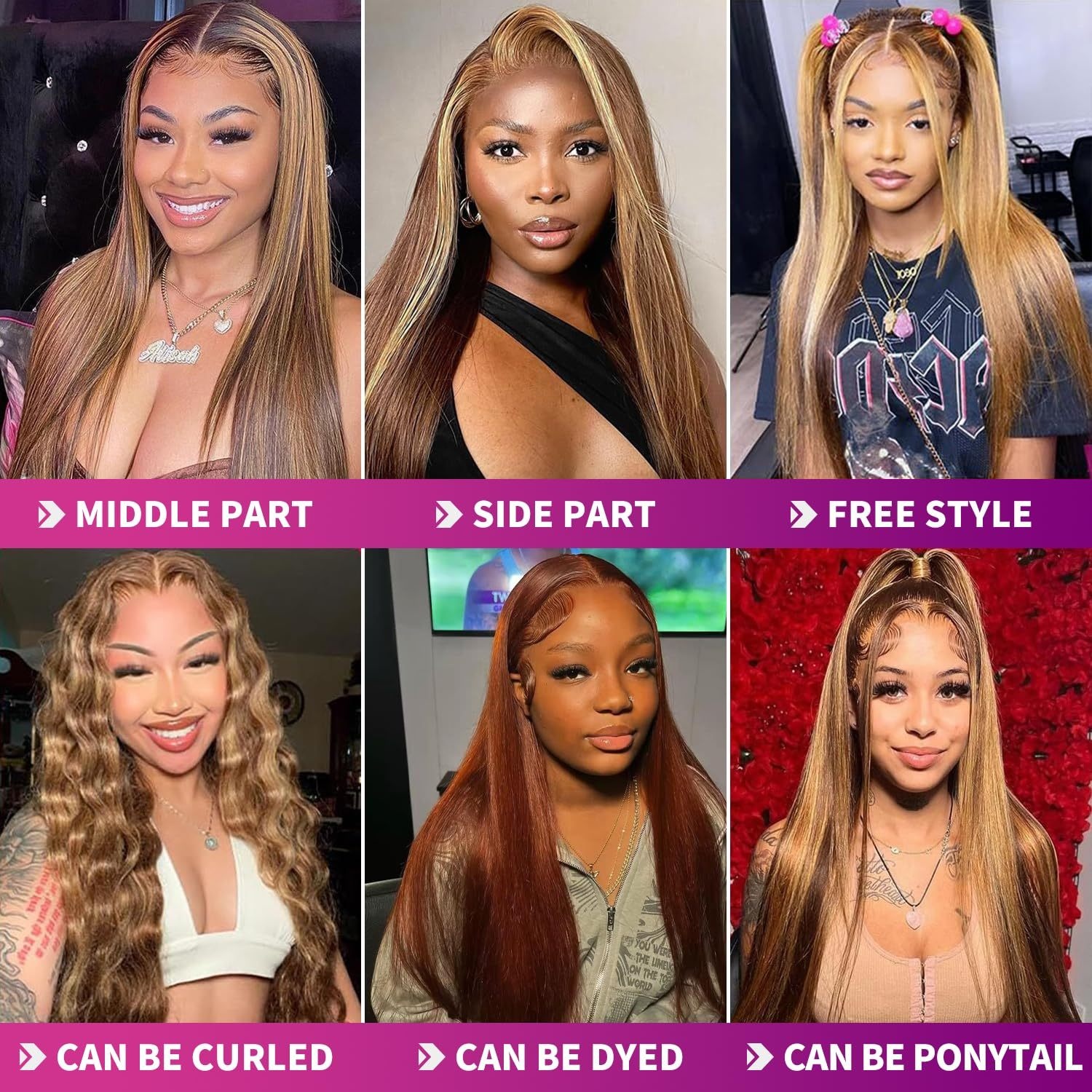 30 Inch Ombre Highlight 13x6 HD Transparent Lace Front Wig Human Hair - Pre-Plucked 180% Density Glueless Honey Blonde to Darker Brown Wig for Women, Party & Casual Attire, All Ethnicities, Wig Accessories