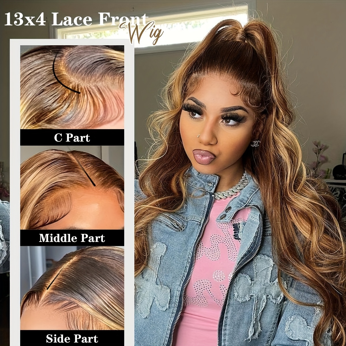 Ombre Lace Front Wig Human Hair 4/27 13x4 Body Wave Highlight Lace Front Wig Human Hair Pre Plucked With Baby Hair Honey Blonde Wig Human Hair 180% Density Colored Wigs Human Hair For Women