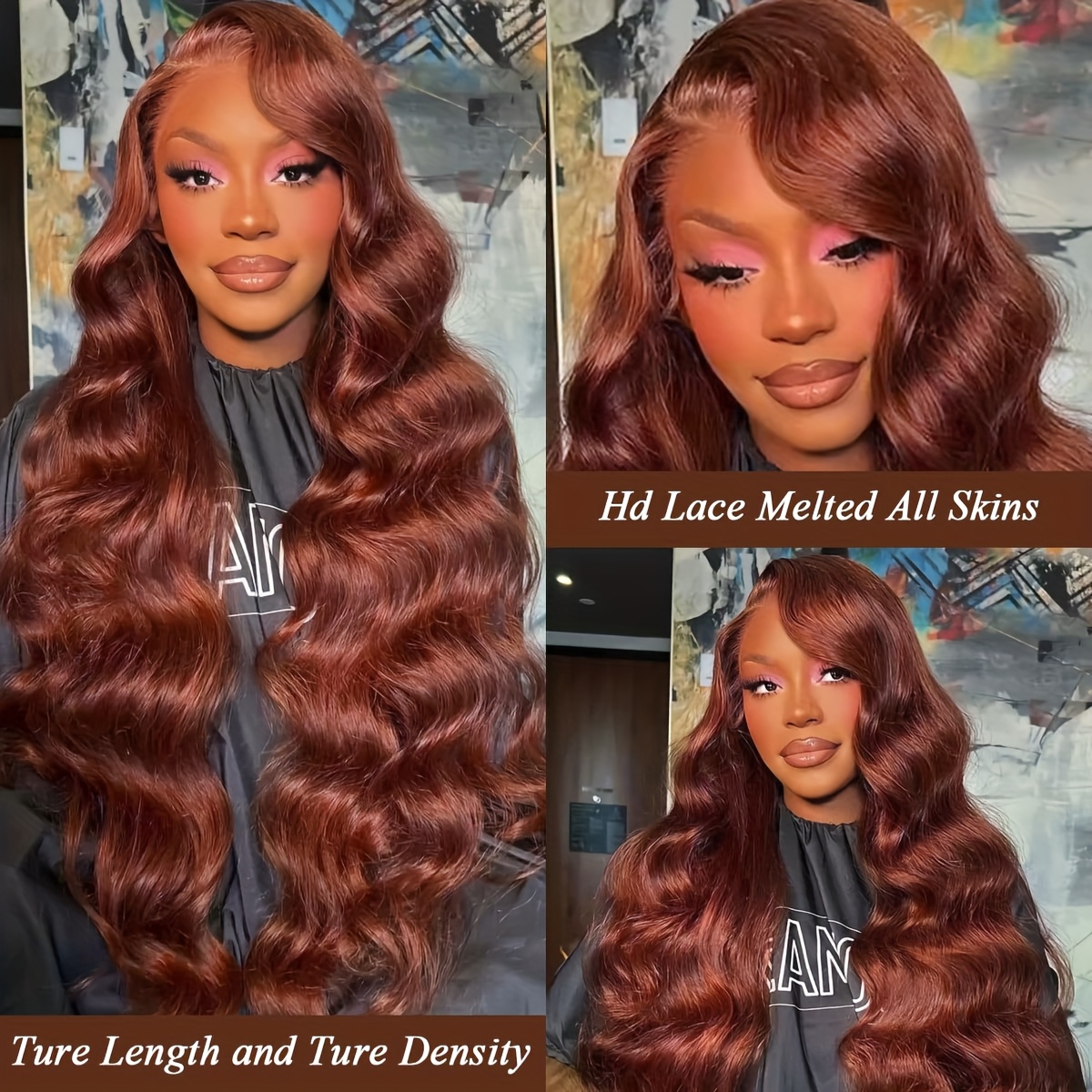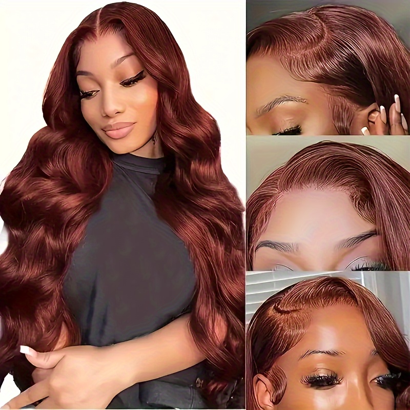 Reddish Brown Lace Front Wig Human Hair HD Transparent 13x4 Lace Front Wig Body Wave Human Hair Wig With Baby Hair 180% Density Pre-Plucked For Women