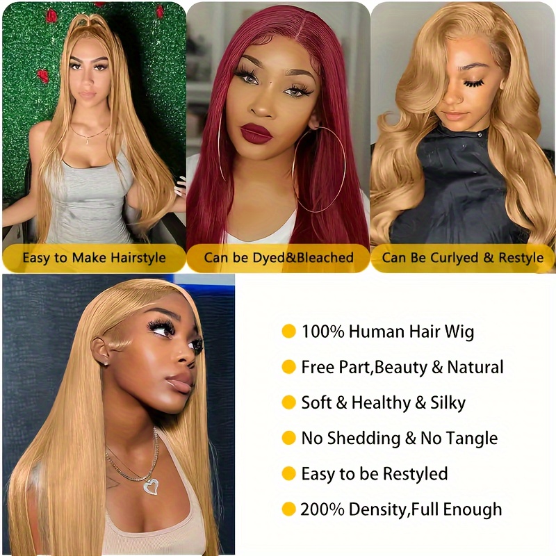 Wigs for Women Easter Hot Selling, Mother's Day Gift Honey Blonde Wig Human Hair 13x6 Lace Front Wigs Human Hair Straight HD Blonde Lace Front Wigs Human Hair 27# Colored Pre Plcuked with Baby Hair