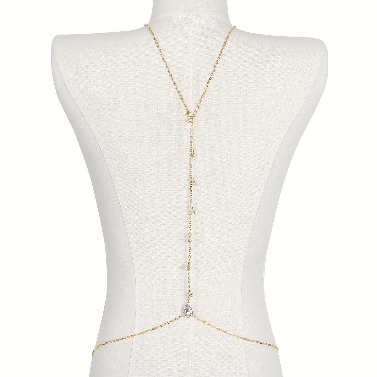 1pc Elegant & Sexy Rhinestone Backless Chain Necklace - Perfect for Beach Parties, Dinners & Evening Gowns, All-Season Daily Occasion Jewelry, Beach Party Jewelry | Elegant Necklace | Rhinestone Chain, Necklace