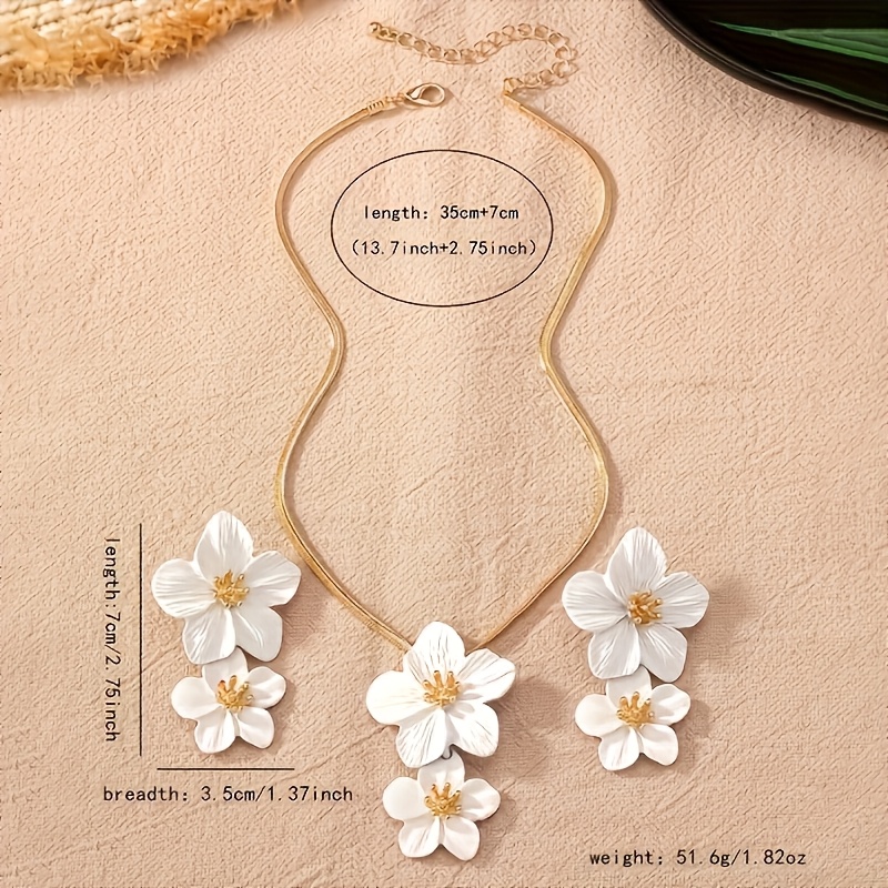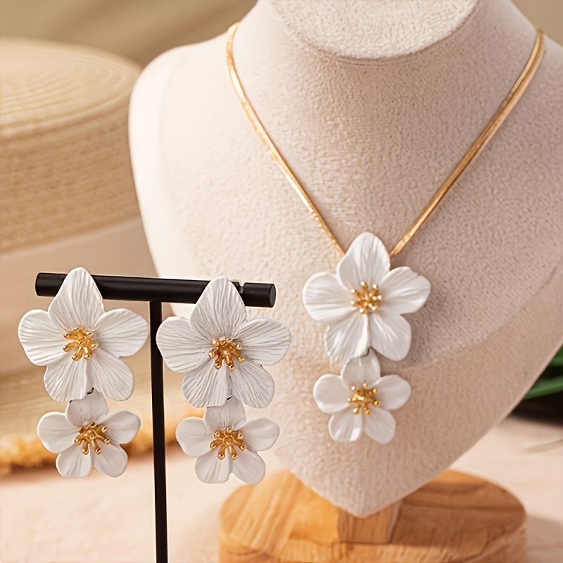 2pcs/set Fashionable And Elegant Flower Pendant Necklace And Earrings Jewelry Set Suitable for Women's Daily Gatherings, Parties, Holiday Travel, And As A Gift for Your Wife On Festivals