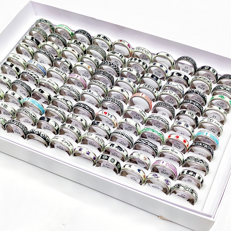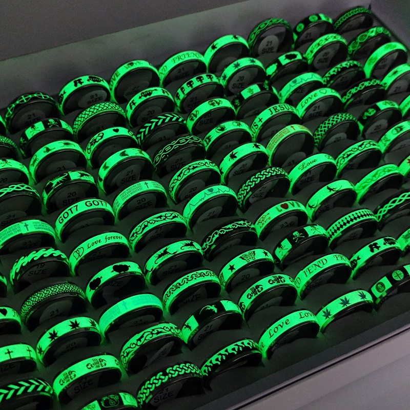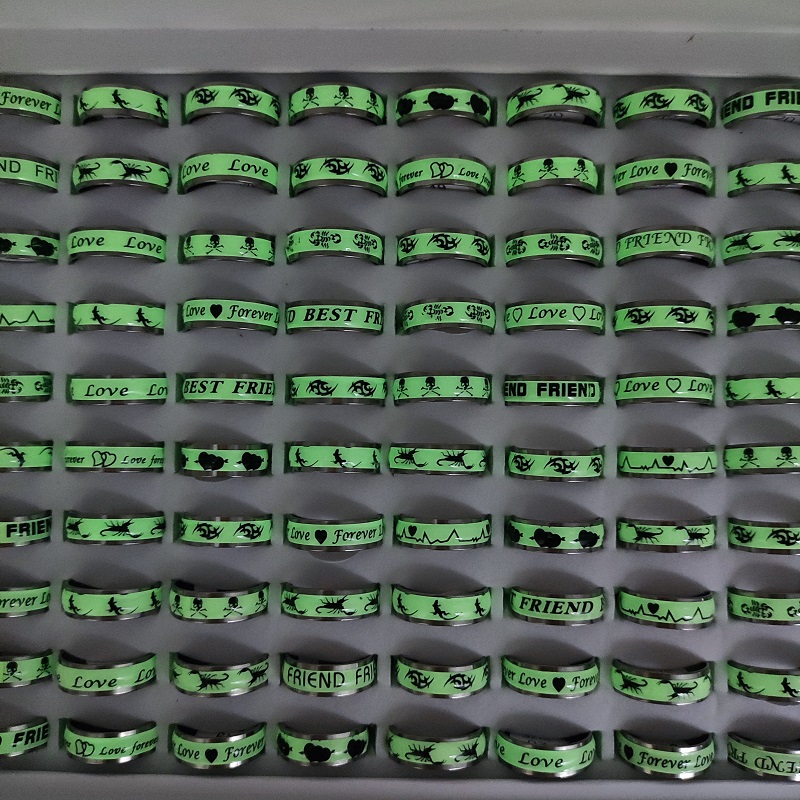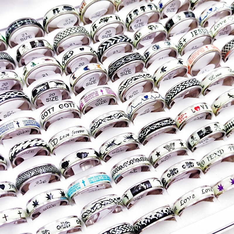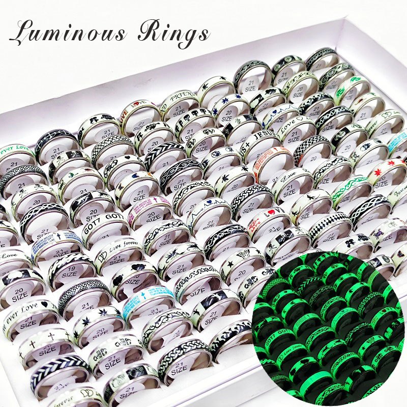 50Pcs/Set Stainless Steel Luminous Rings For Women Men Mix Style ECG LOVE Animal Glow In The Dark Jewelry