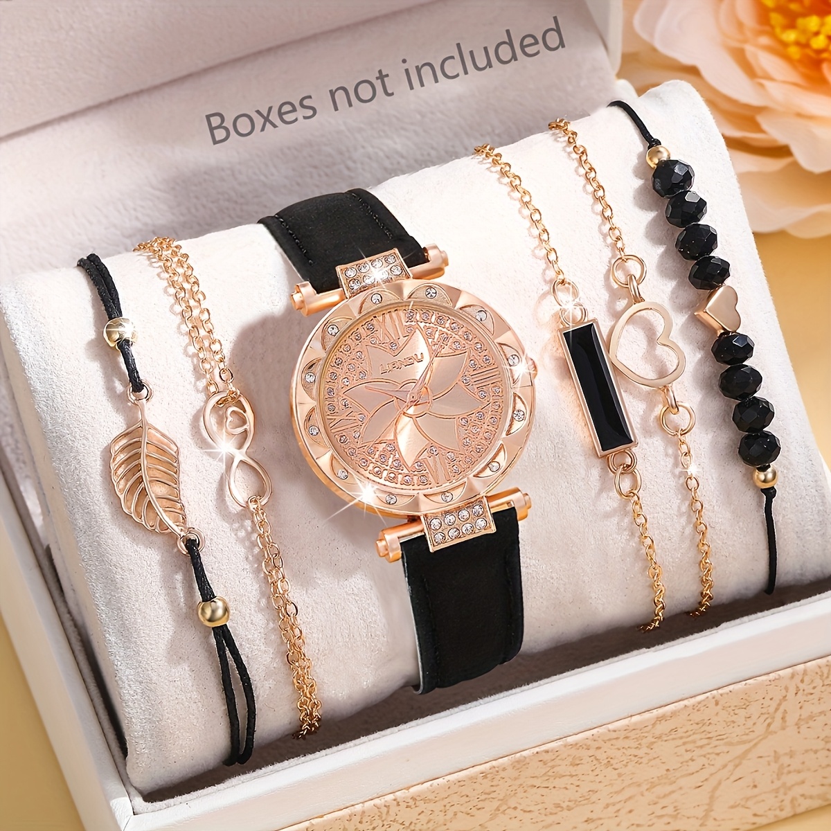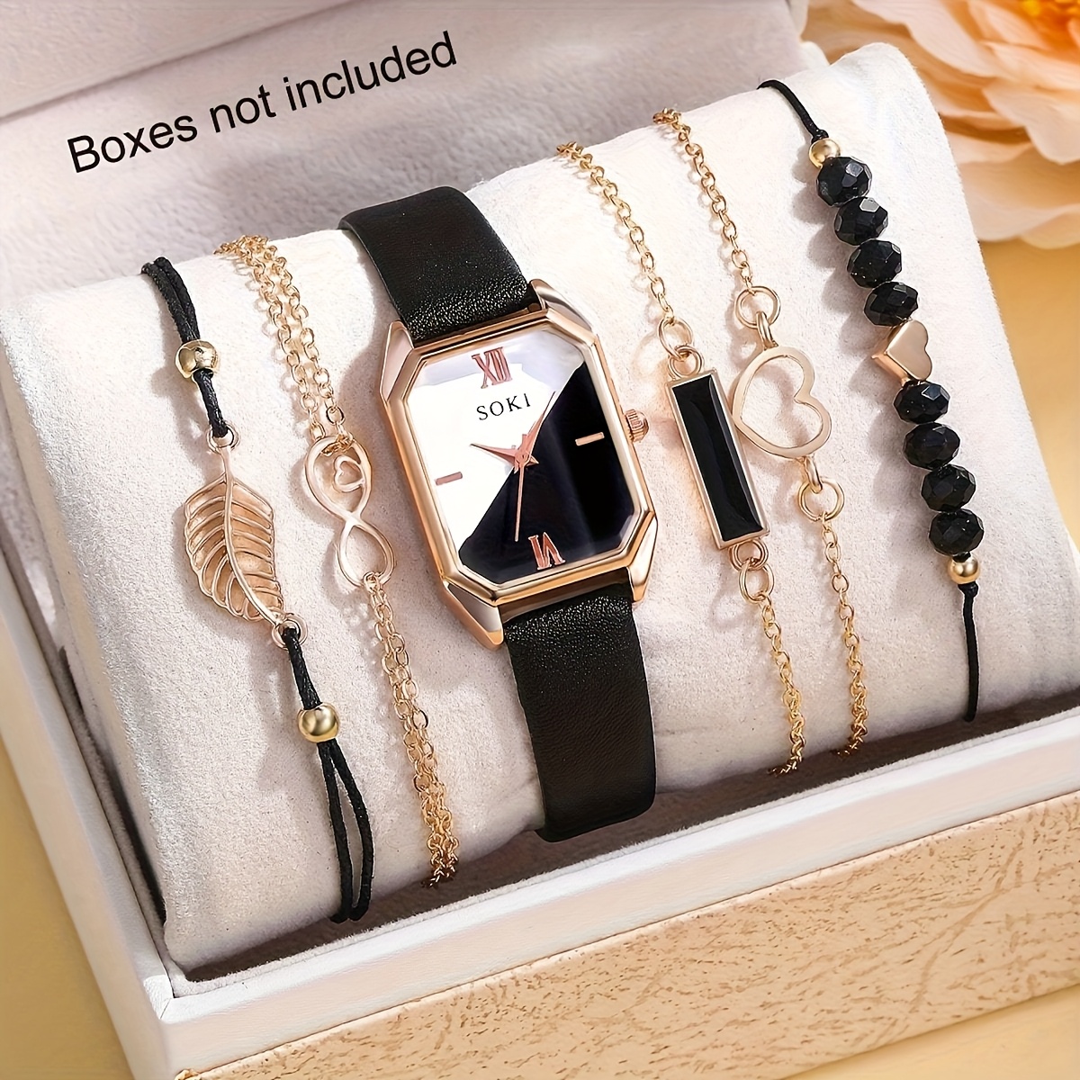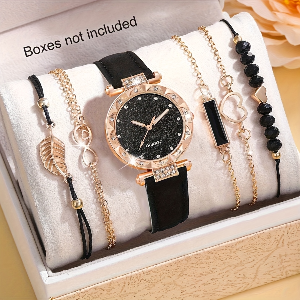 Women's Watch 6pcs Fashion Casual Elegant Simple Round Quartz Wristwatch And Woven String, Bracelet Jewelry Set Mother's Day Women Party Holiday Birthday Wear Or As Sisters The Best Gift for A Lady No Box