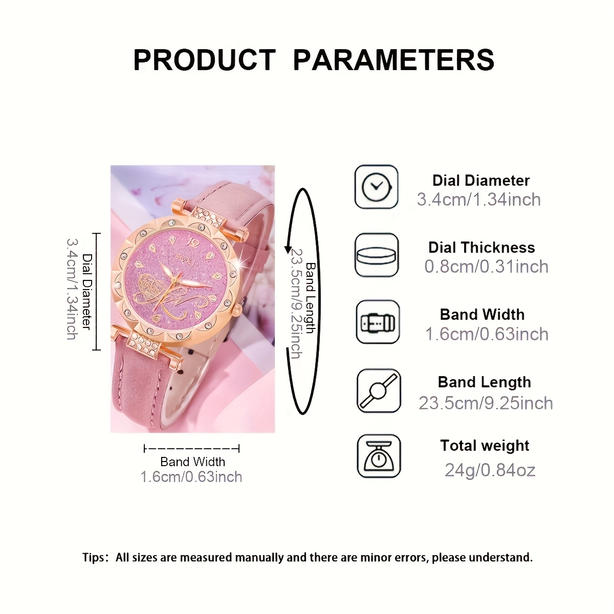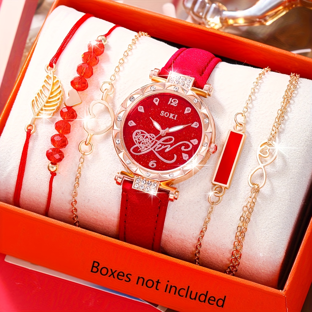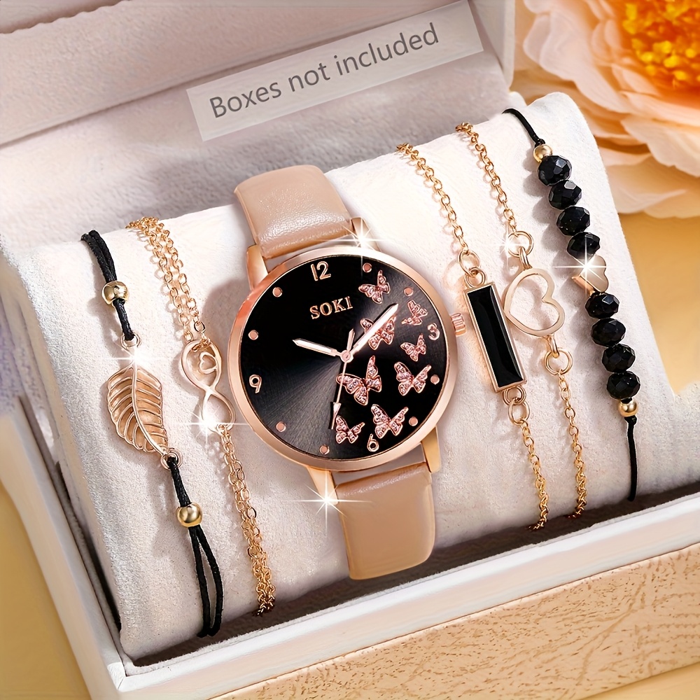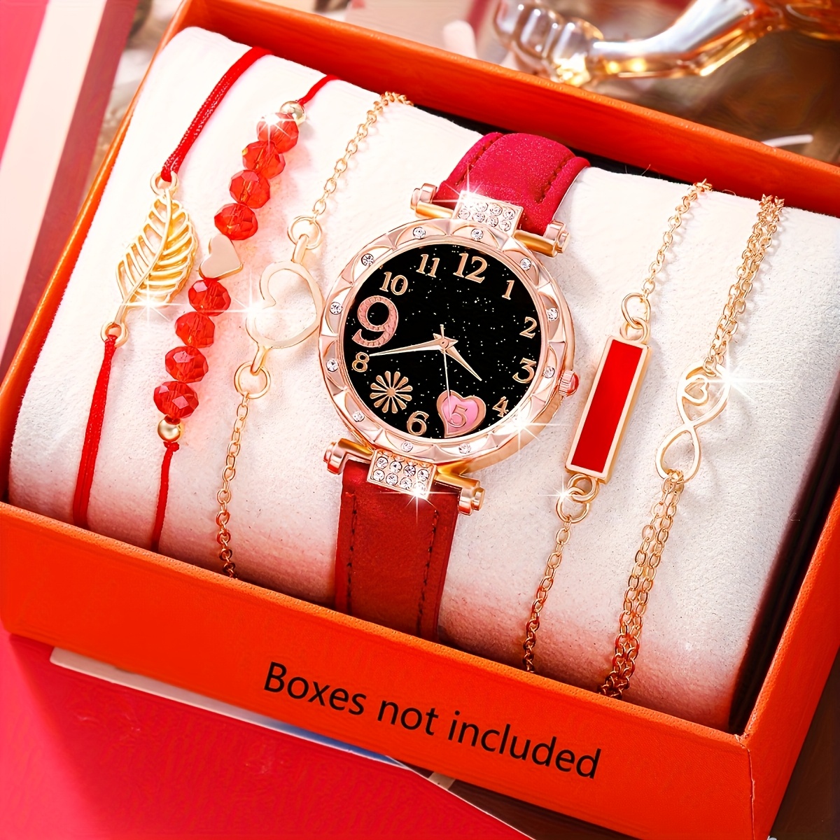 Women's Watch 6pcs Fashion Casual Elegant Simple Round Quartz Wristwatch And Woven String, Bracelet Jewelry Set Mother's Day Women Party Holiday Birthday Wear Or As Sisters The Best Gift for A Lady No Box