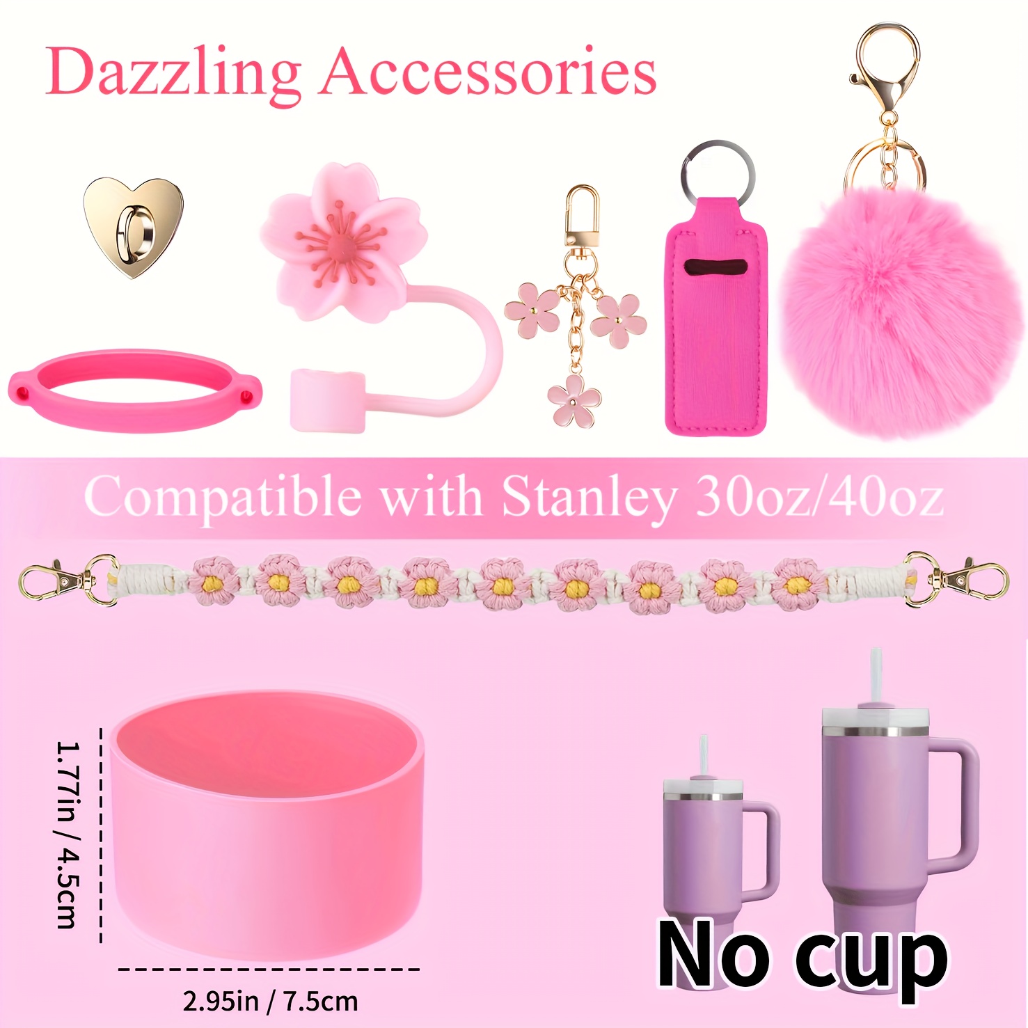Guulone 8PCS Water Bottle Accessory Kit: Silicone Handle Strap, Protective Sleeve, Straw Cover, Lipstick Pouch, Cup Charms - Fits 30oz/40oz Insulated Tumblers