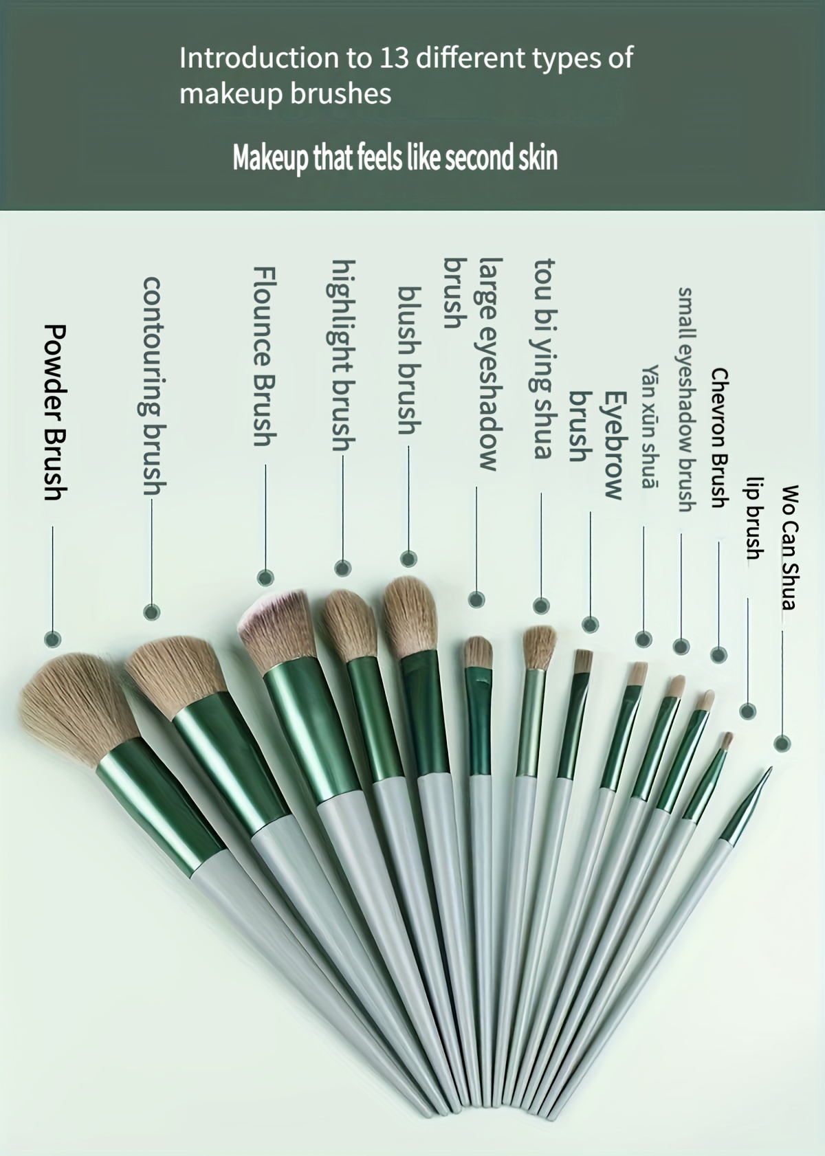 13 Professional Makeup Brushes Foundation Powder Concealer Eye Shadow Smudge Blush Highlight Natural Synthetic Brush Travel Portable Set+flannel Bag