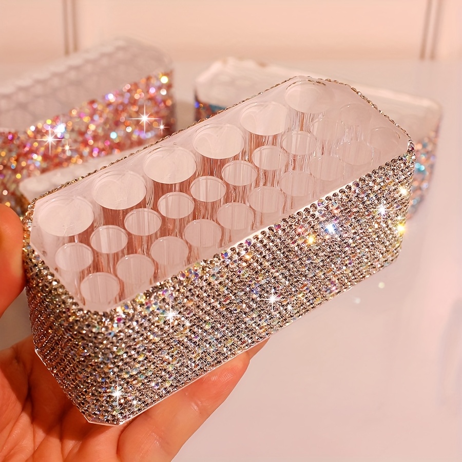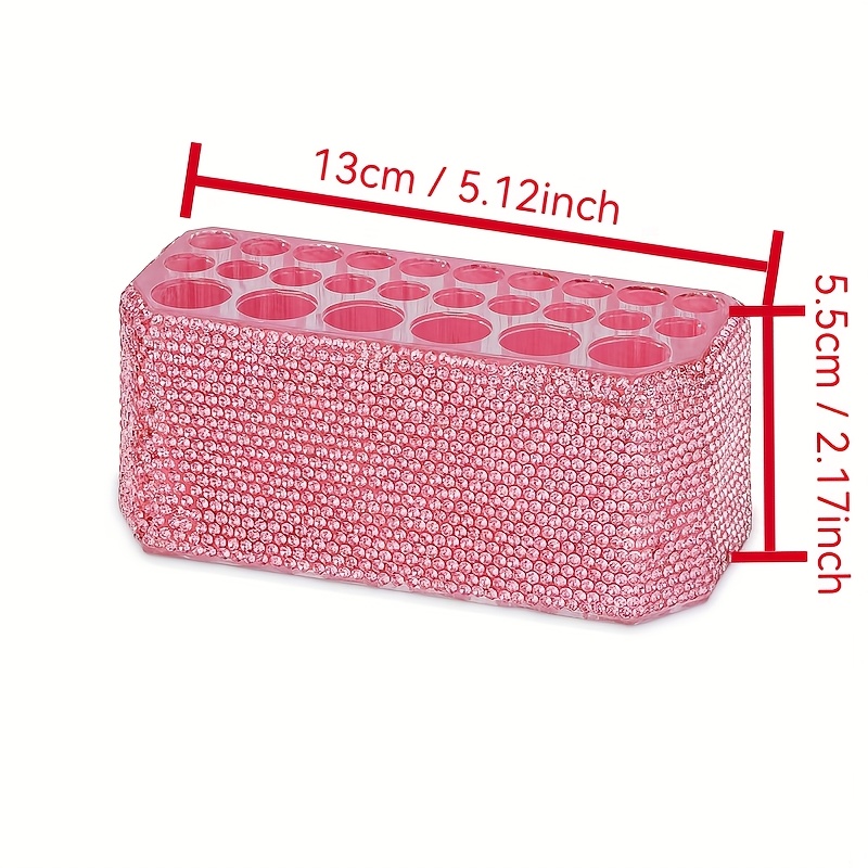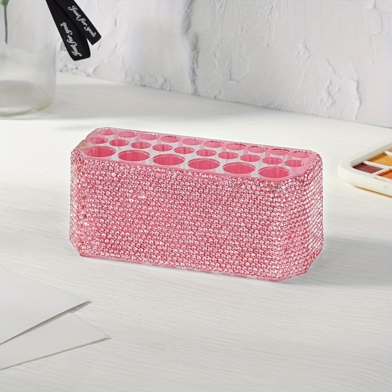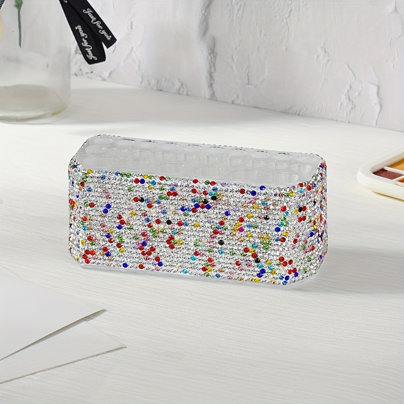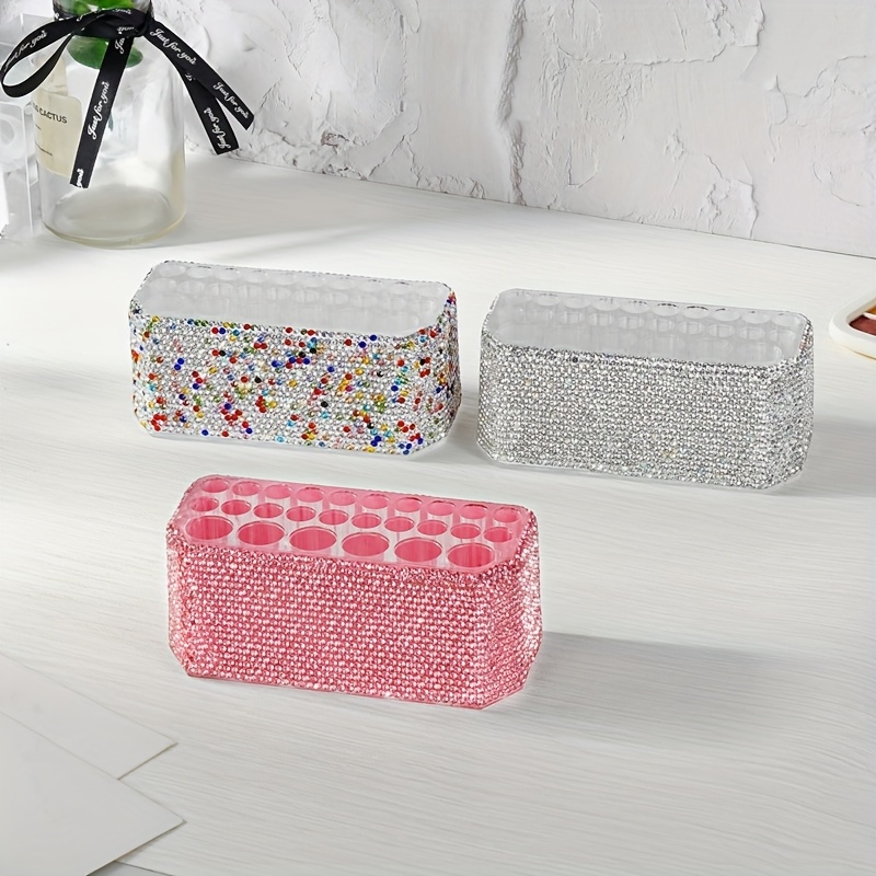 Fashion Creativity Luxury Diamond Inlay Cosmetic Pen Storage Box Eyebrow Pencil Holder with 26 Holes for Makeup Brushes and Eyeliners