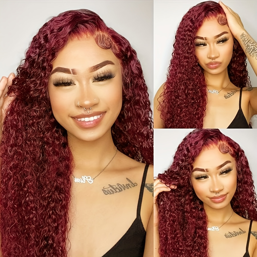 Kinky Curly Lace Front Wigs Synthetic Burgundy 13x4x1 T Part HD Transparent Lace Long Afro Curly Bouncy Hair 30 Inch Natural Wine Red Color Hair Heat Friendly For Women Girls Party Daily Makeup Use Ready To Wear 180% Full Den