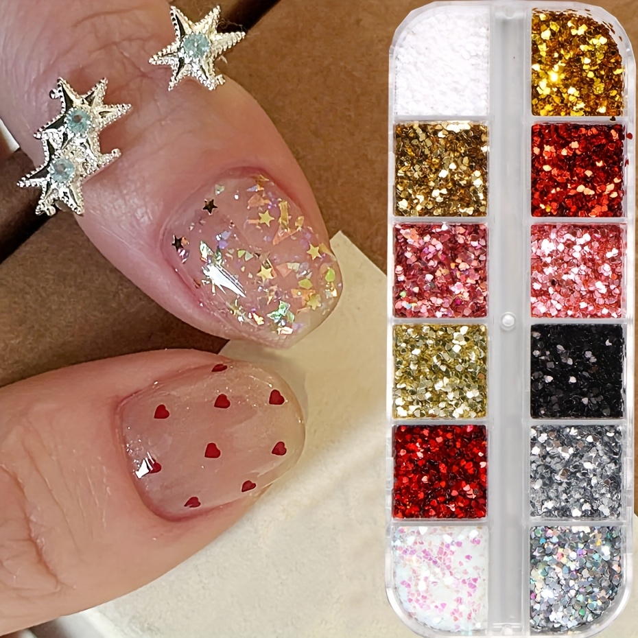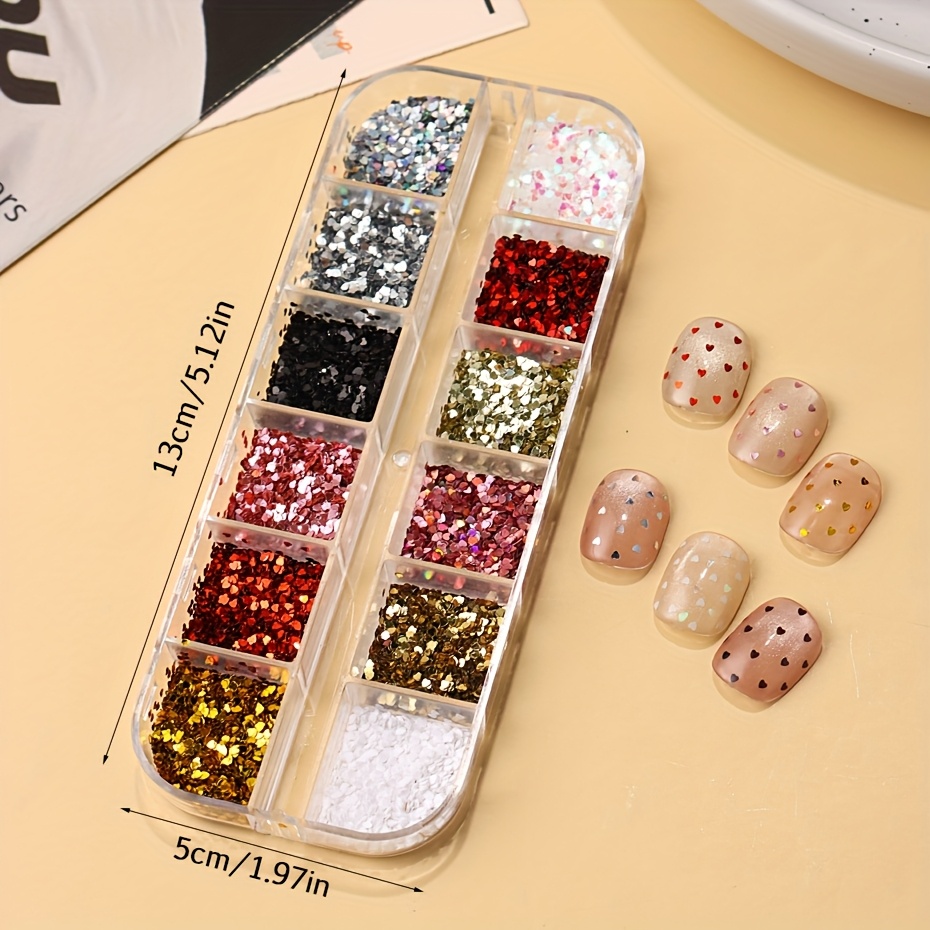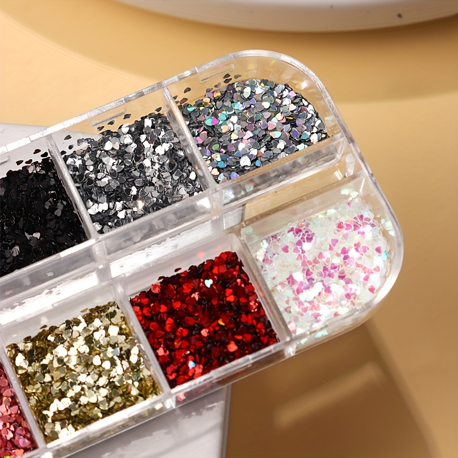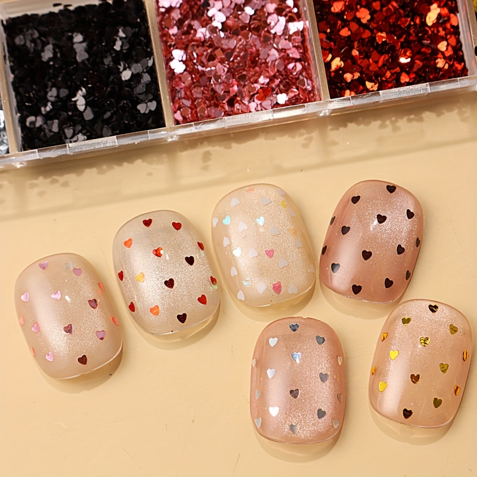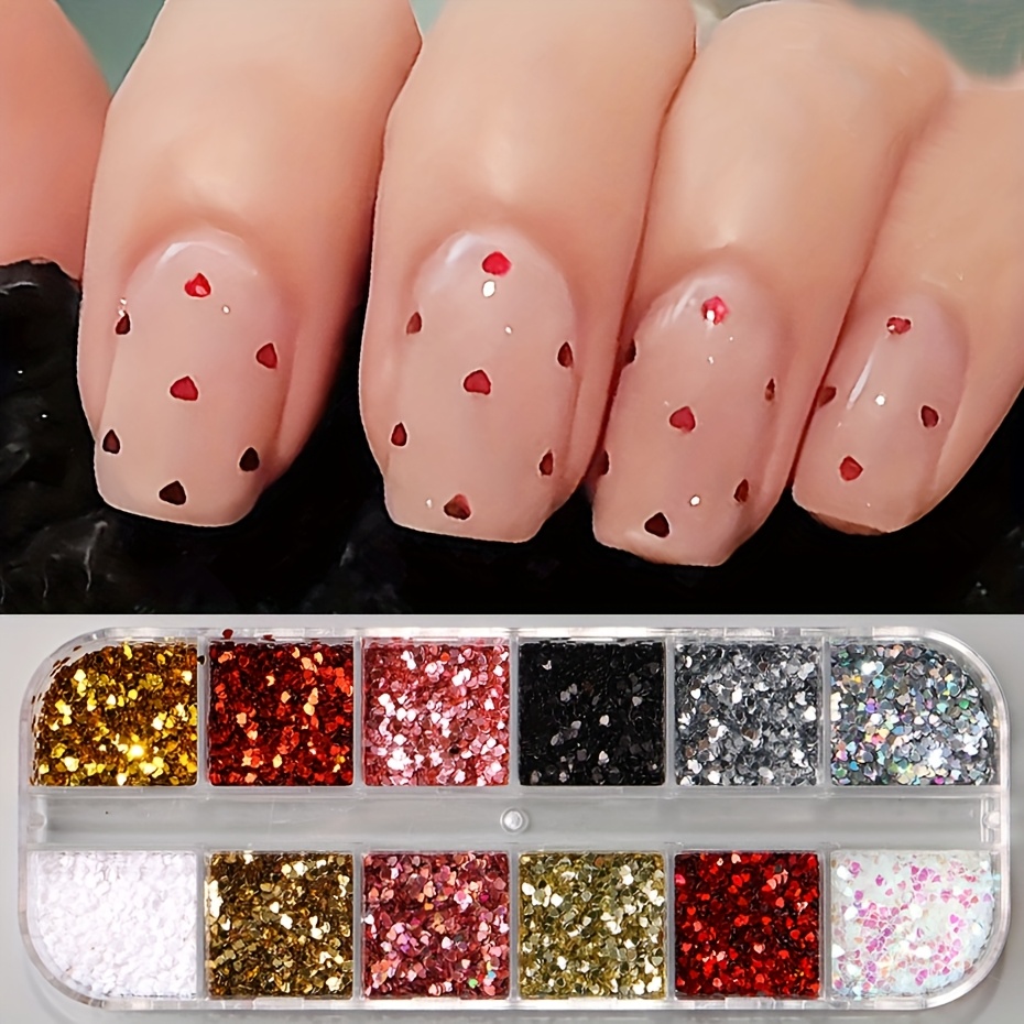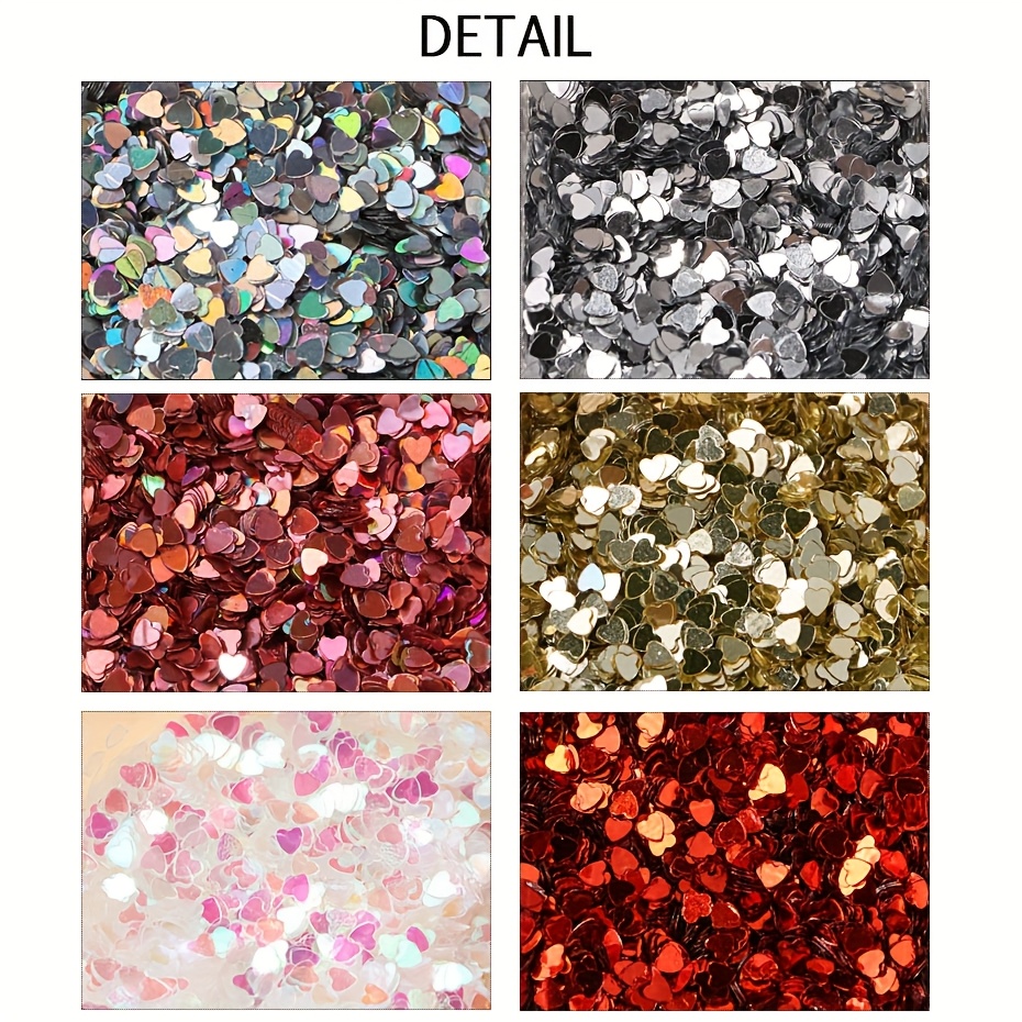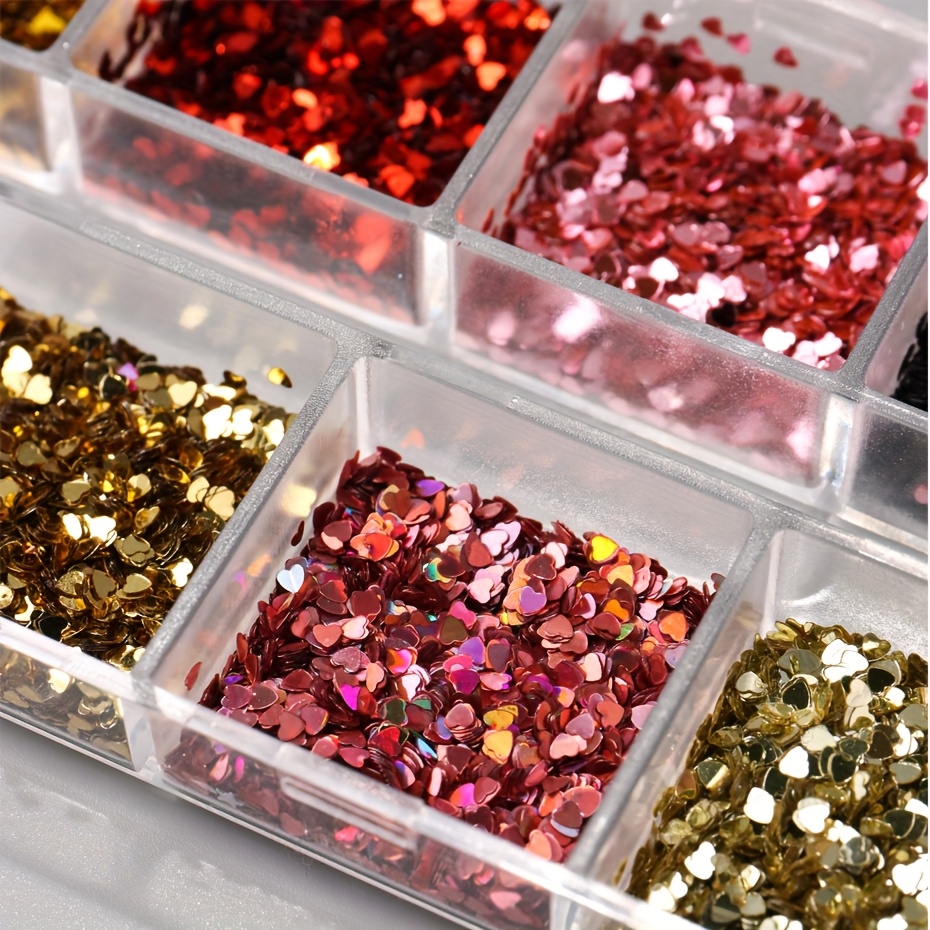 Mini Love Heart Nail Glitter Sequin Laser Shiny Sparkly Sequin 3D Holographic Red Pink Golden Silvery Flash Flakes DIY Nail Decorations