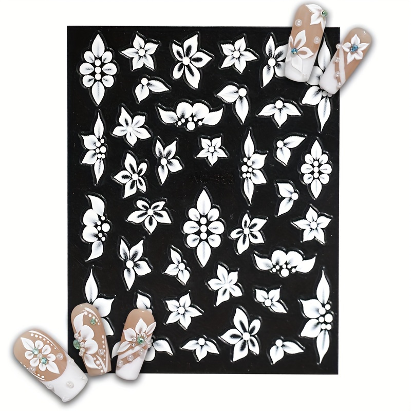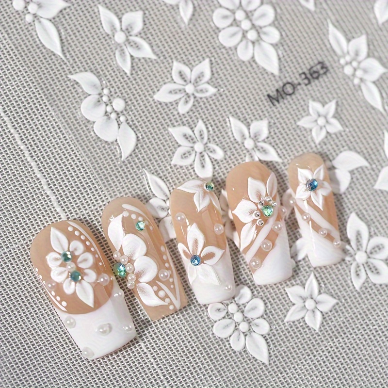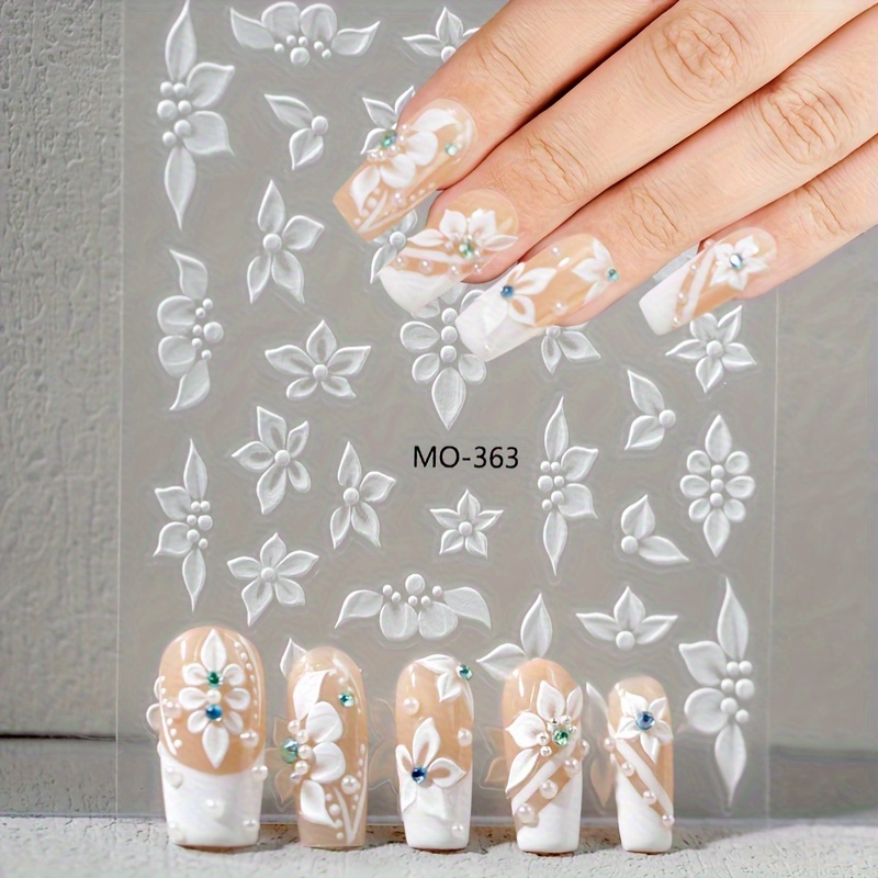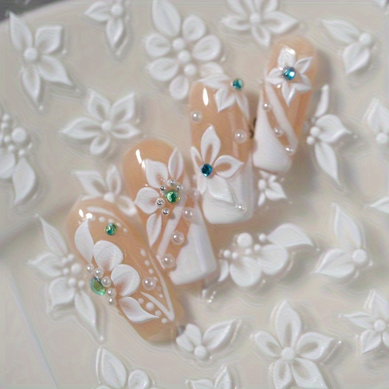 1 Set 3D Embossed Floral Nail Art Stickers - Self-Adhesive Plastic Nail Embellishments, Matte Finish, Plant Theme, Single Use, Irregular Shape - Unscented, Nail Art Decor | Floral Nail Design | Durable Nail Stickers