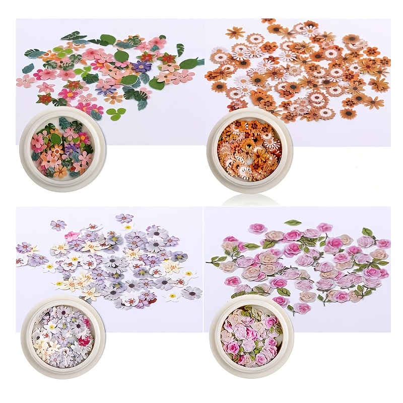 9 Boxes 3D Flower Nail Stickers Set, Holographic Simulation Floral & Leaf Nail Glitter Sequins, Acrylic Paillettes Sparkle Charms for DIY Nail Art Decoration, Unscented Nail Supplies