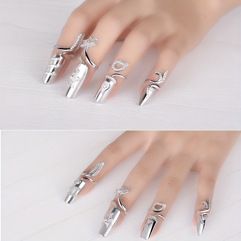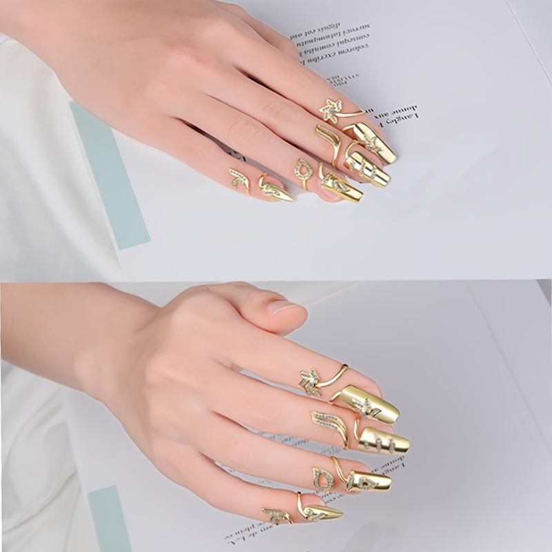 Arousar 8pcs Elegant Hollow Ring Nail Art Set - Fashion Metal Nail Art, Hypoallergenic, Perfect for Ladies and Girls, Ideal for Valentine'S Day