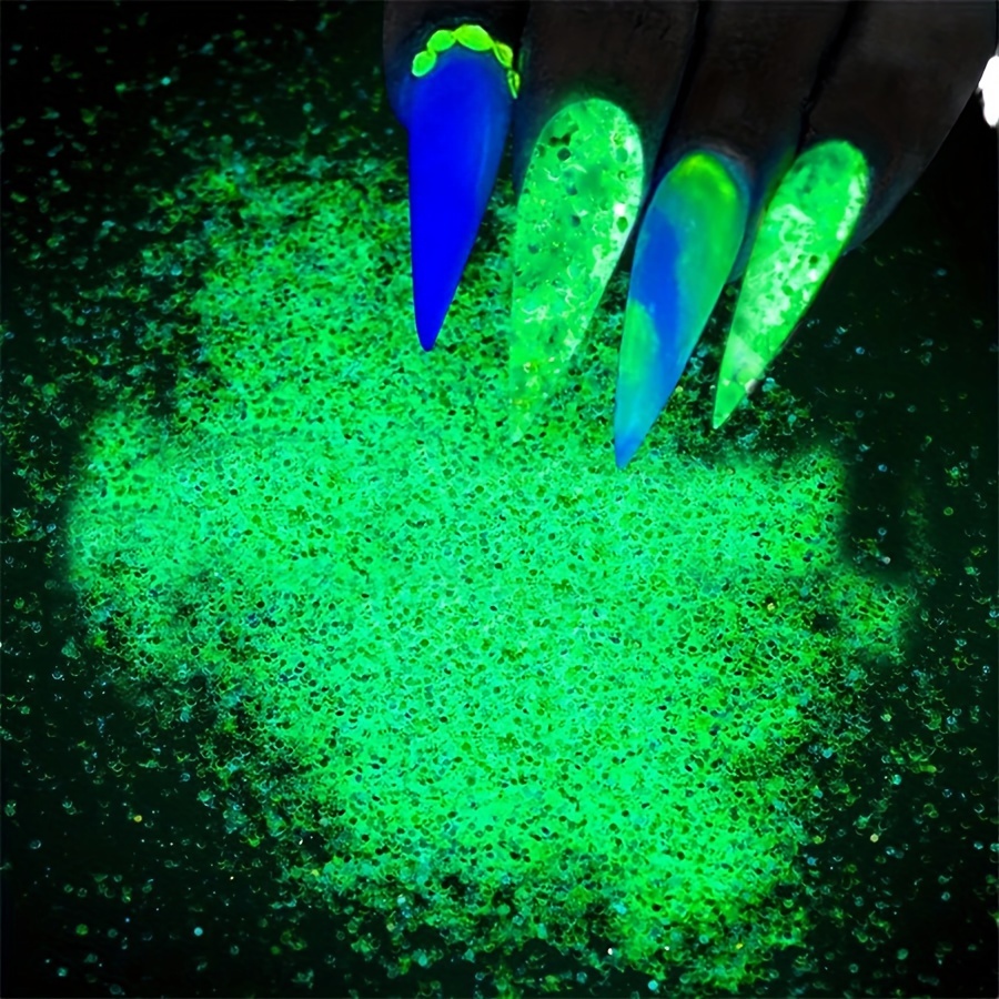 Glow-in-the-Dark Nail Powder - Blue & Green Luminous Pigment Dust, Odorless Phosphor Glitter for Stunning Manicures