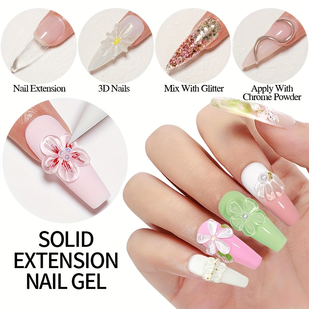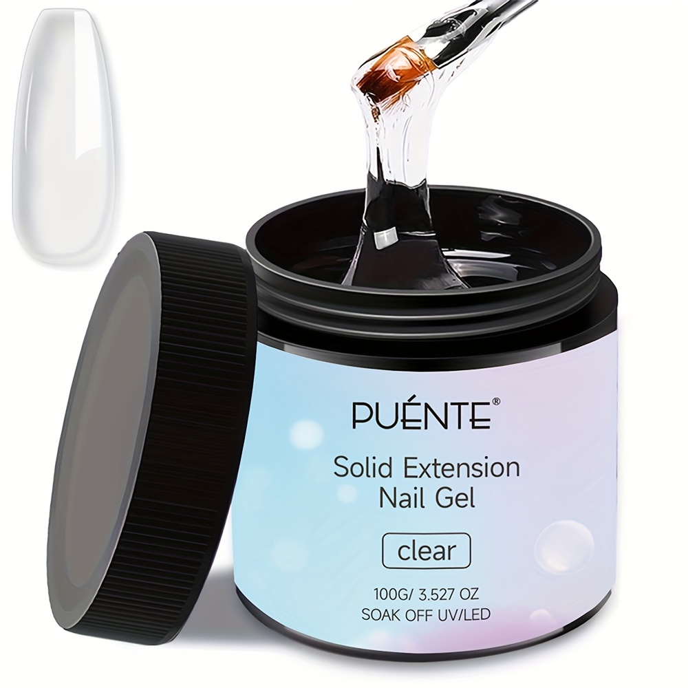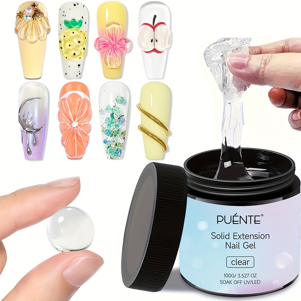 PUENTE 100g Solid Extension Nail Gel With Silicone Sculpture Pen Set, Clear, Non-Stick Hand, 3D Sculpture & Rhinestone Adhesive, Easy Application, Odorless, Soak-Off UV LED Gel For Nail Art, Alcohol-Free, For Home Salon Use