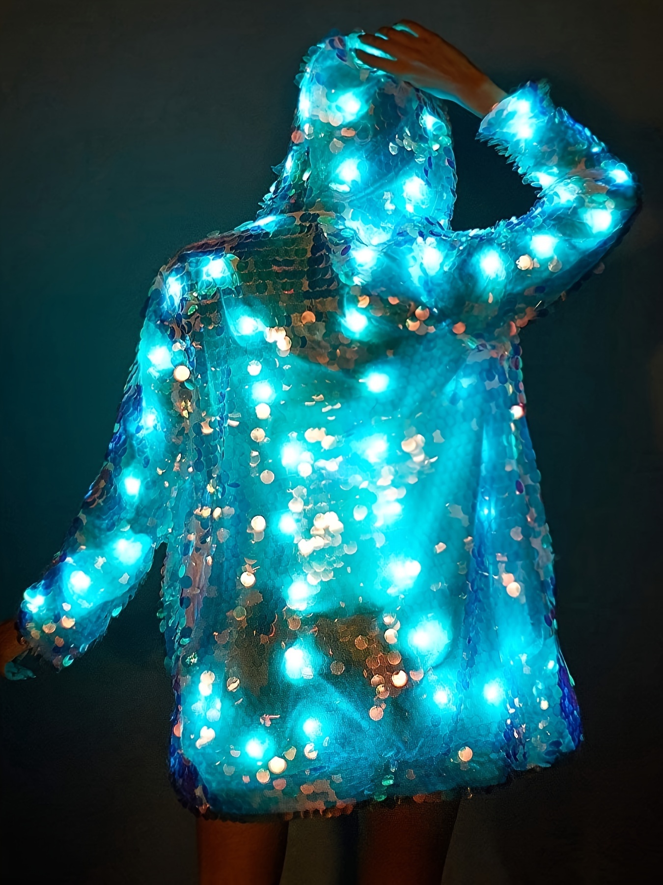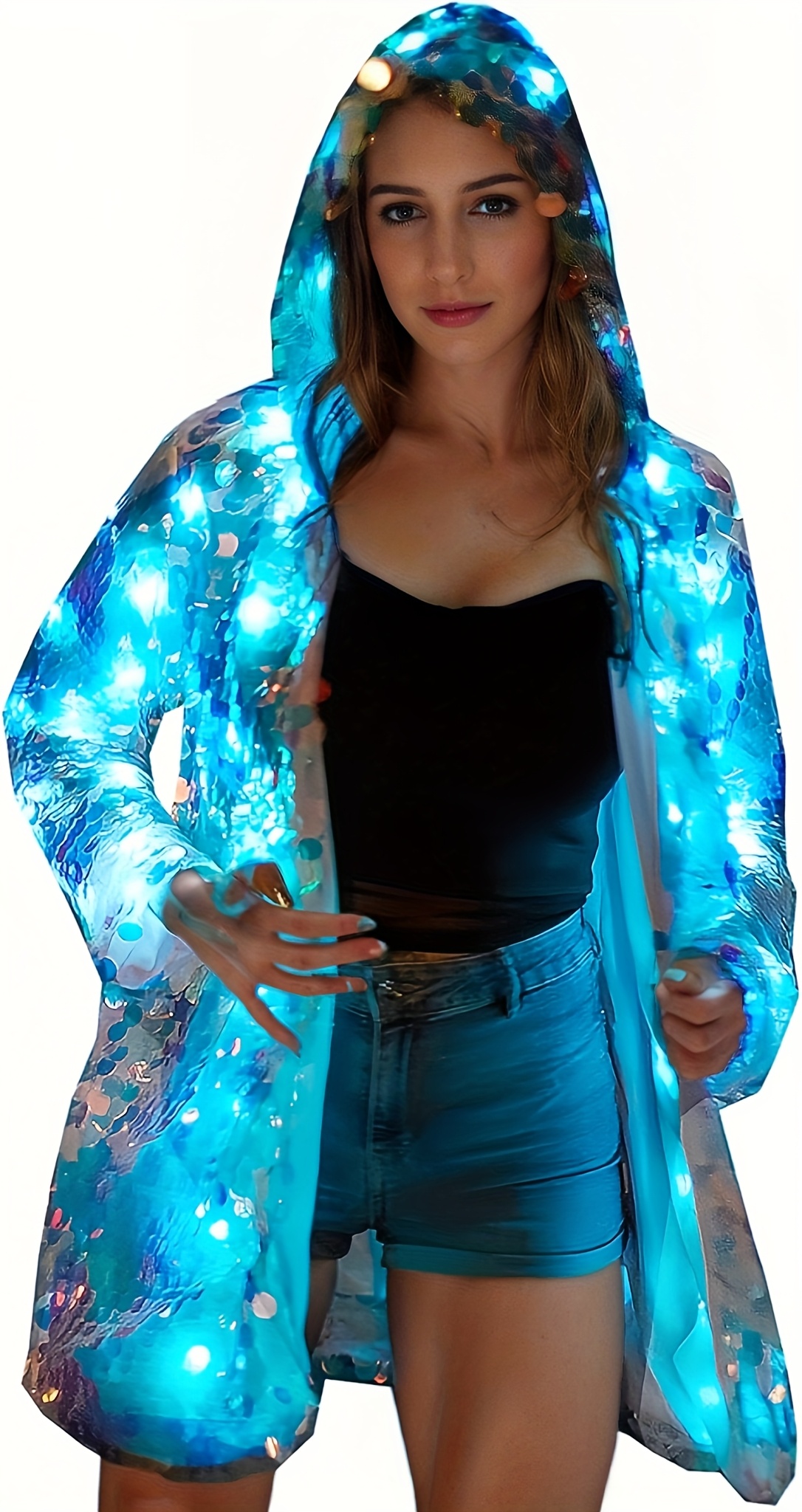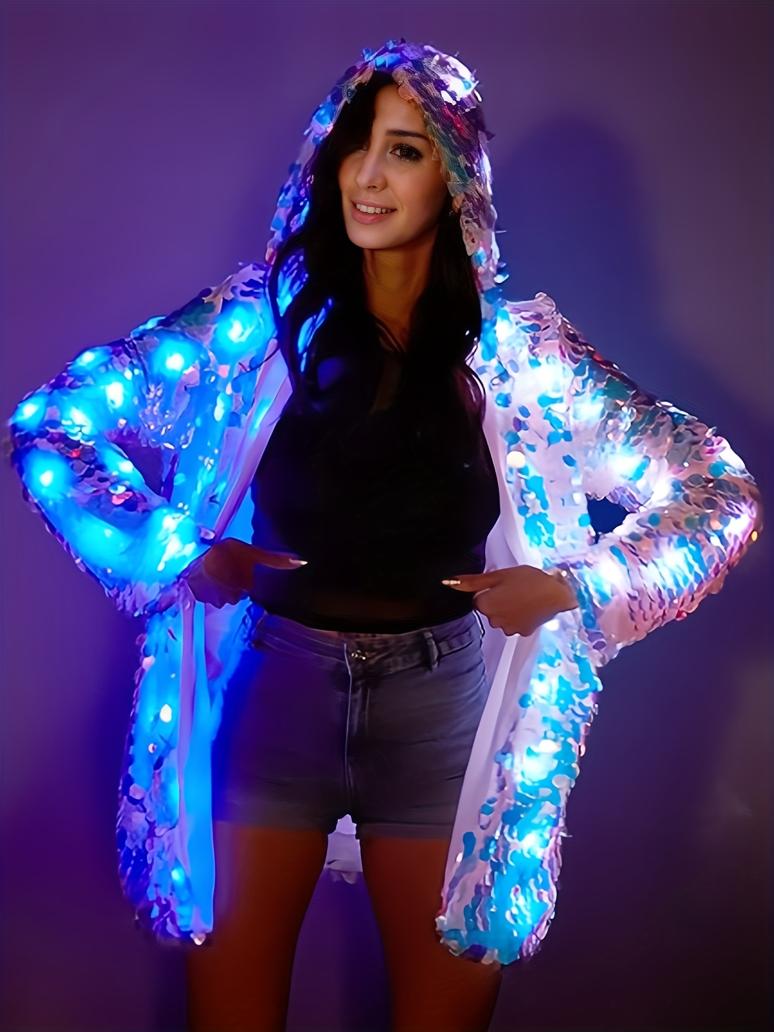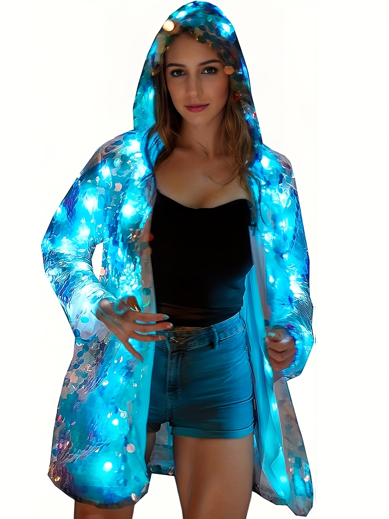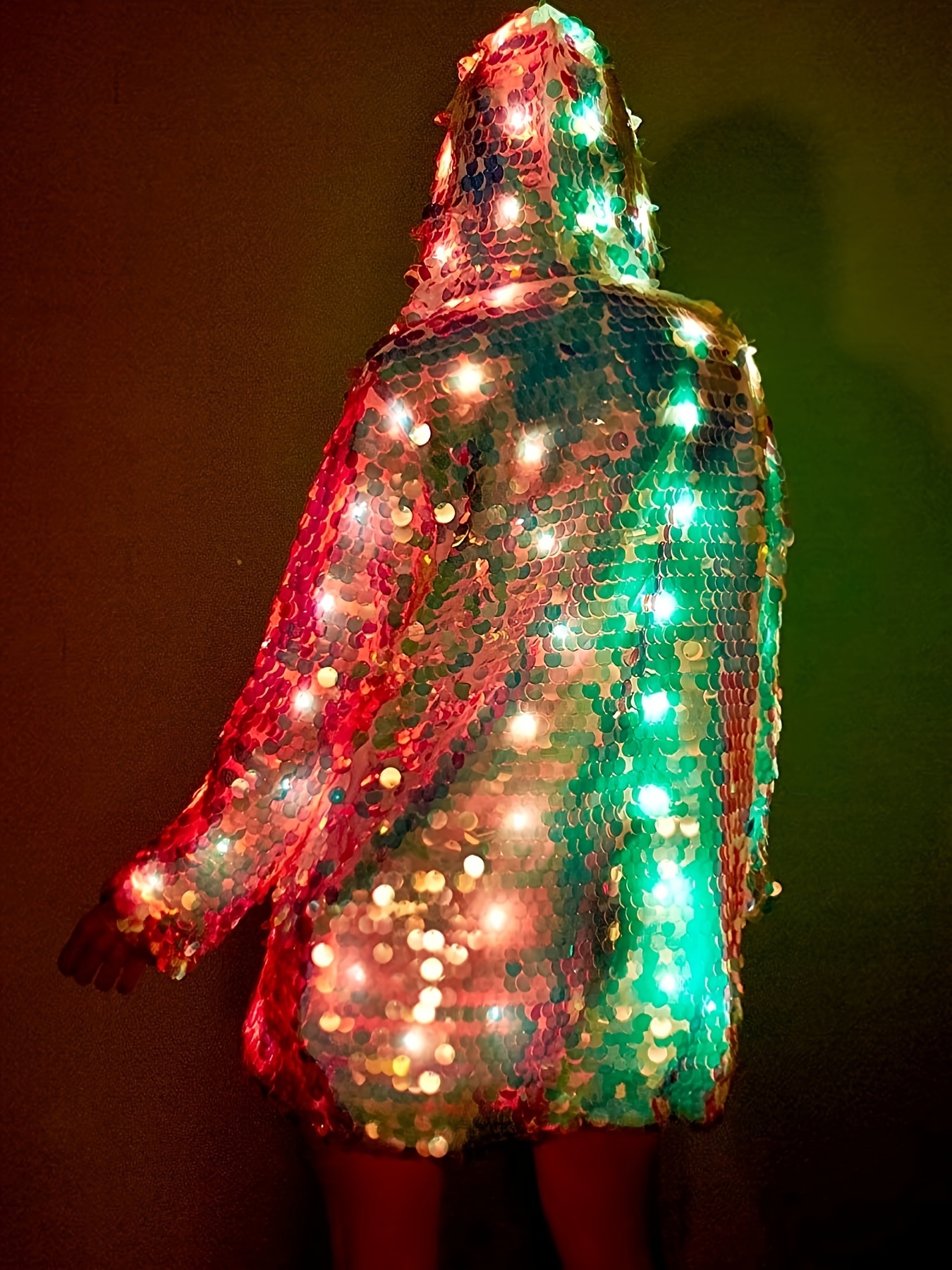Stylish Special LED Clothing Sequin Patchwork Casual Festival Party Hooded Long Sleeve LED Jacket No Battery