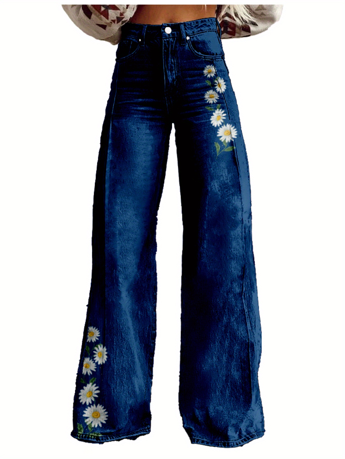 Imitation Jeans Wide Leg Versatile Flared High Waisted 3D Printed Women'S Baggy Pants Abstract Geometry Element A Line Hanging Feel Casual Comfortable Loose Floor Length Pants Spring Autumn Polyester Y2K