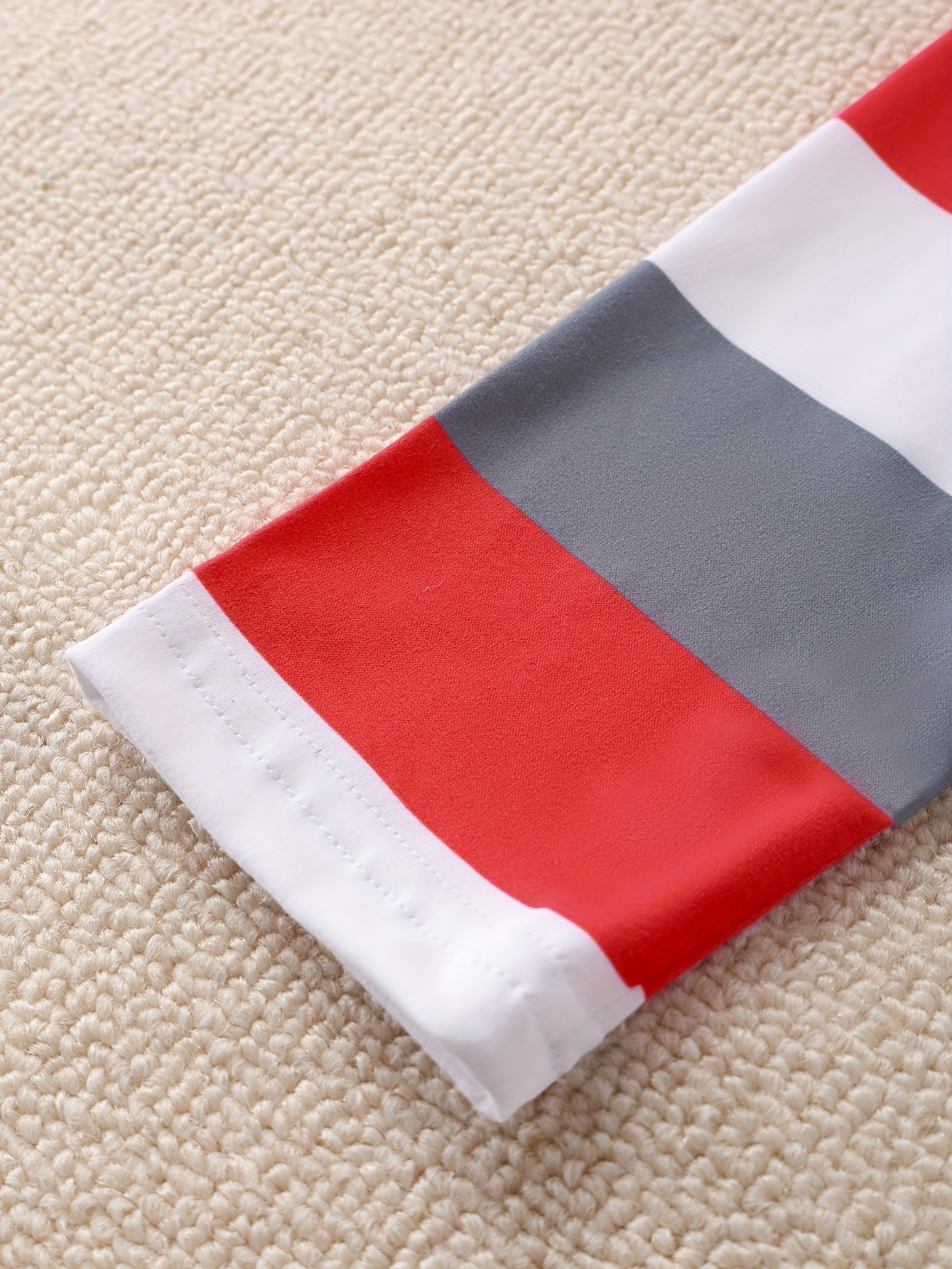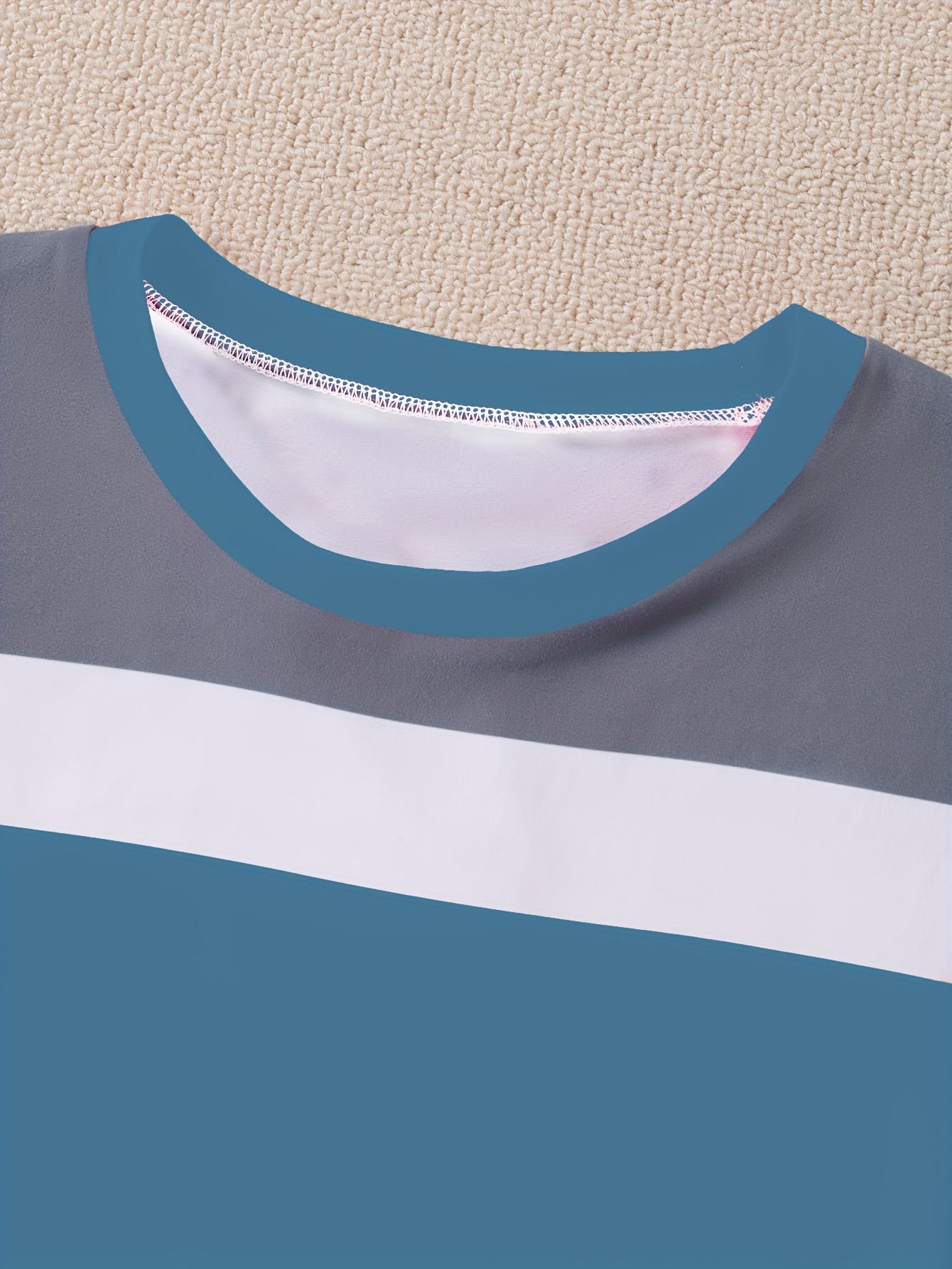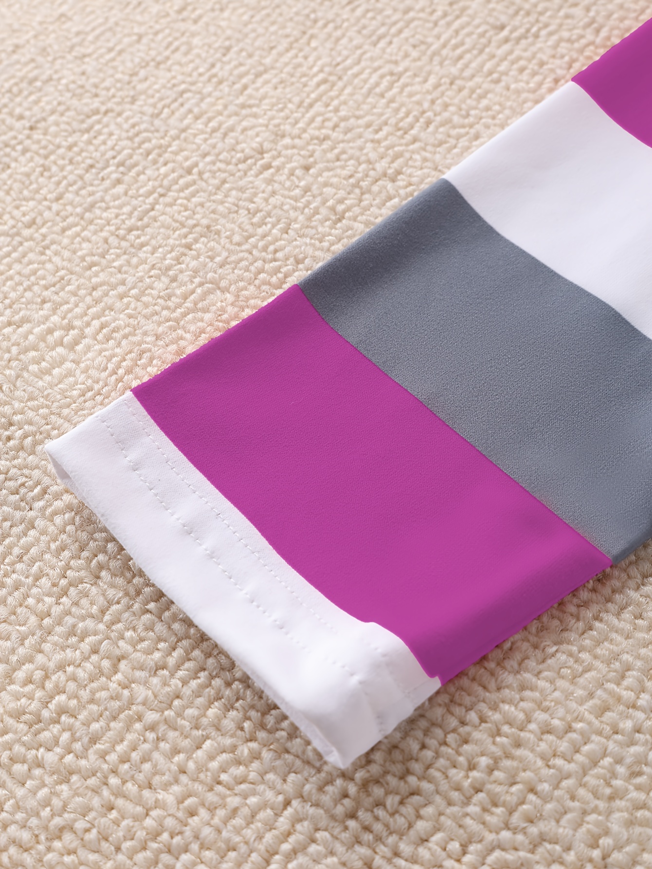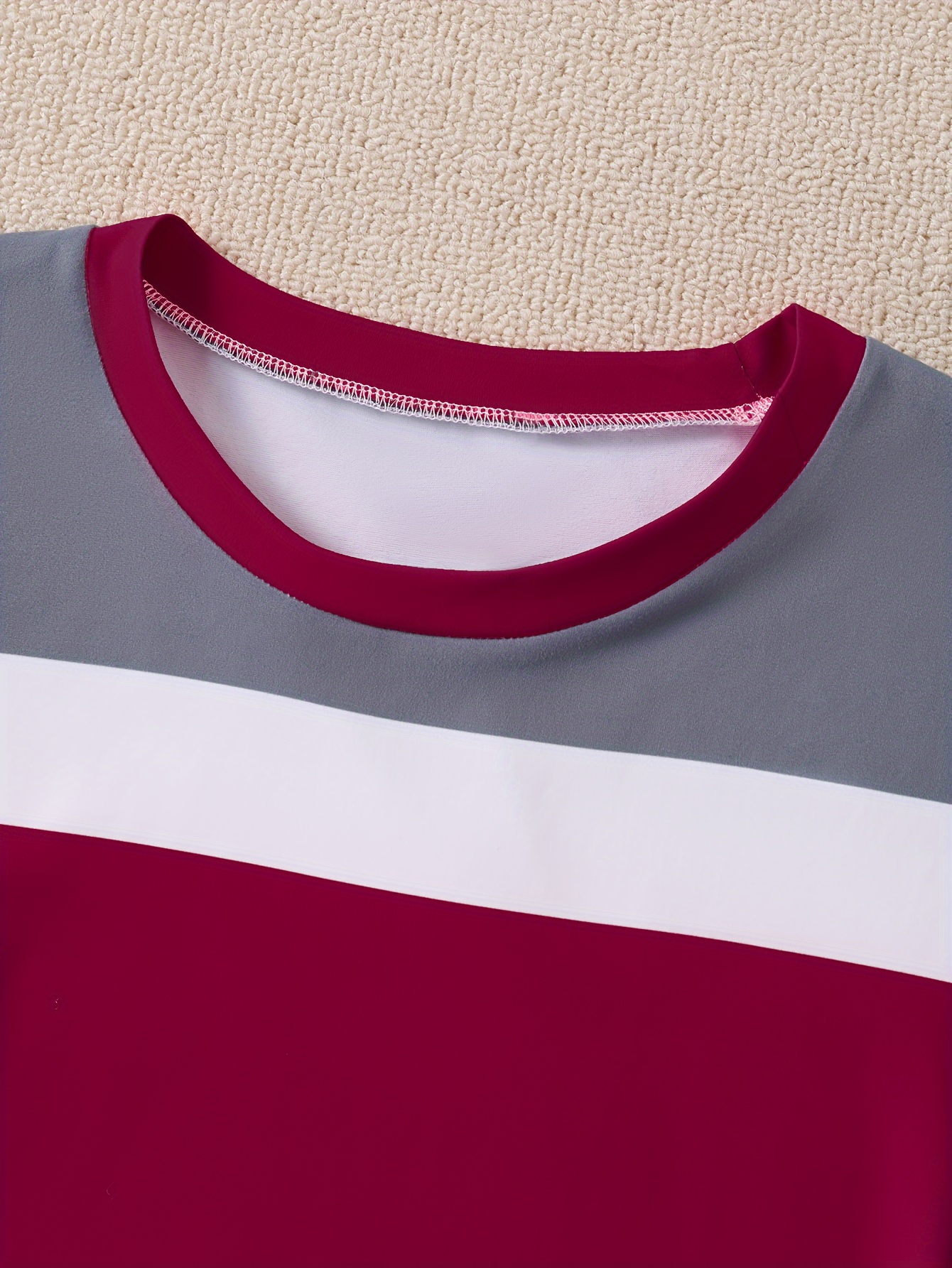 Slim Matching Two-piece Set, Casual Long Sleeve Crew Neck Striped Color Block T-shirt & Solid Elastic Waist Pants Outfits, Women's Clothing