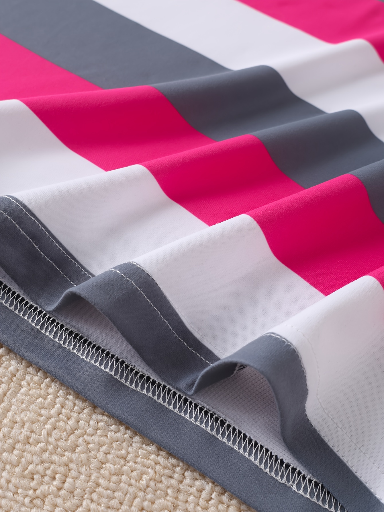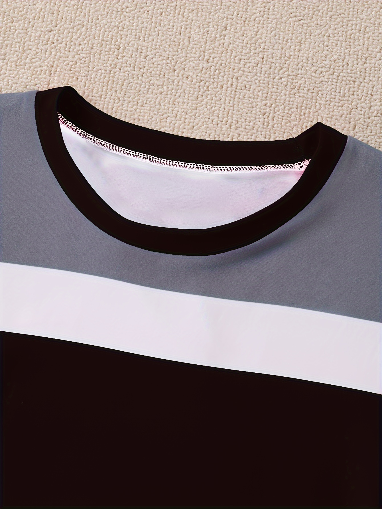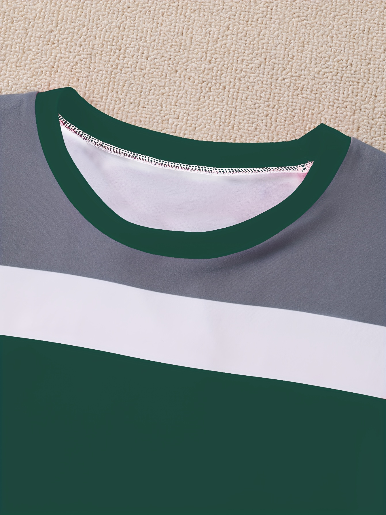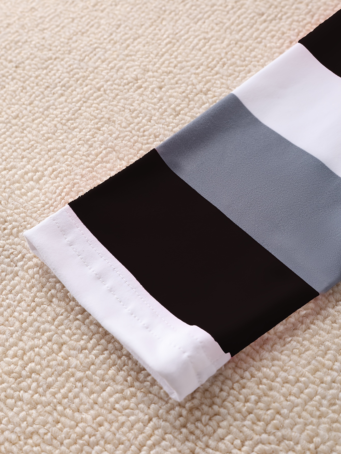 Slim Matching Two-piece Set, Casual Long Sleeve Crew Neck Striped Color Block T-shirt & Solid Elastic Waist Pants Outfits, Women's Clothing