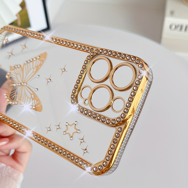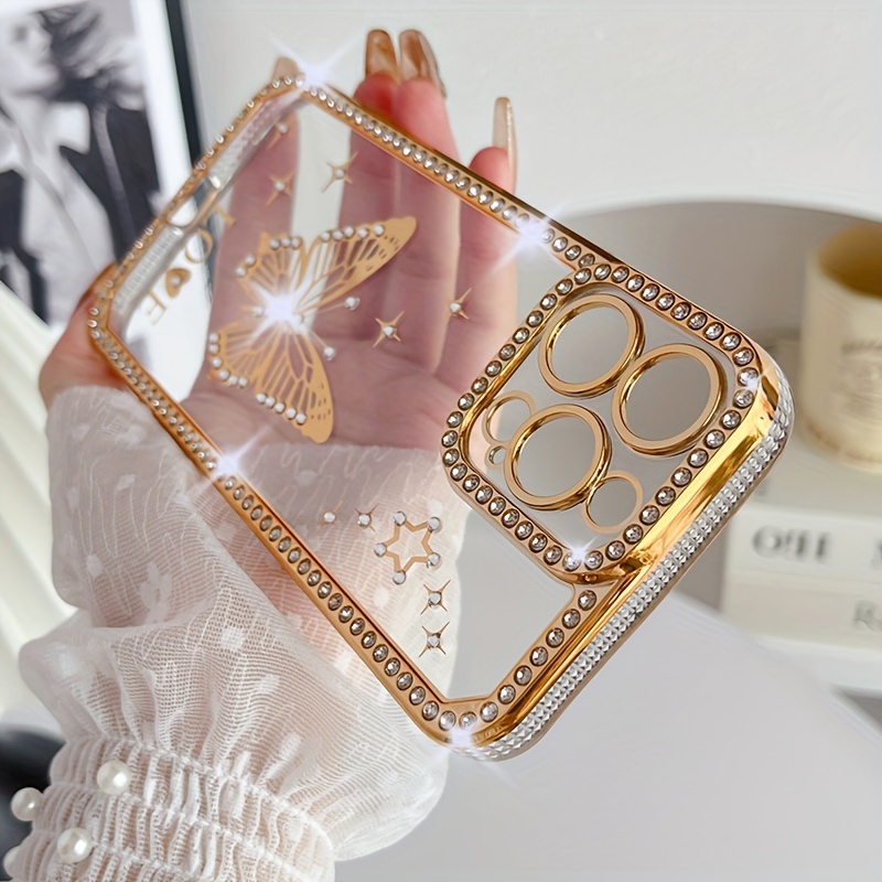 A TPU Phone Case for Women Featuring a Hollow Butterfly Design with 6D Laser Engraving And Water Diamond Plating.