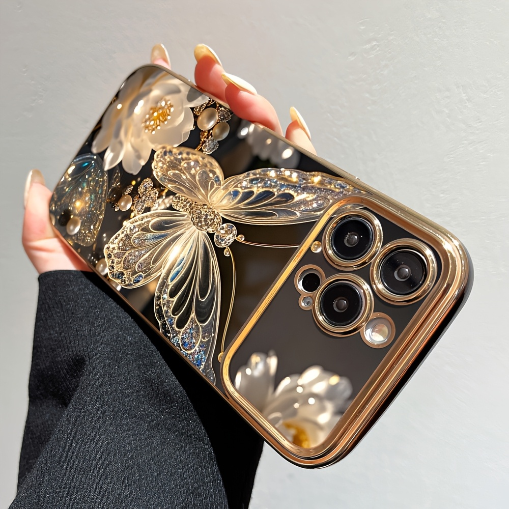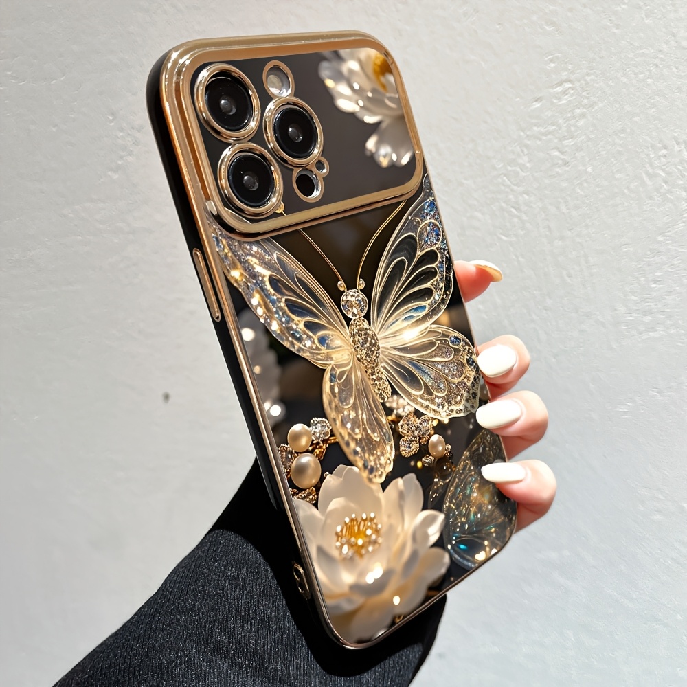 Compatible with Iphone 16 Pro Max, 11, 12, 13 Pro Max, 14 Pro Max, 15 - Black - Butterfly Pattern Large Window LB Phone Case