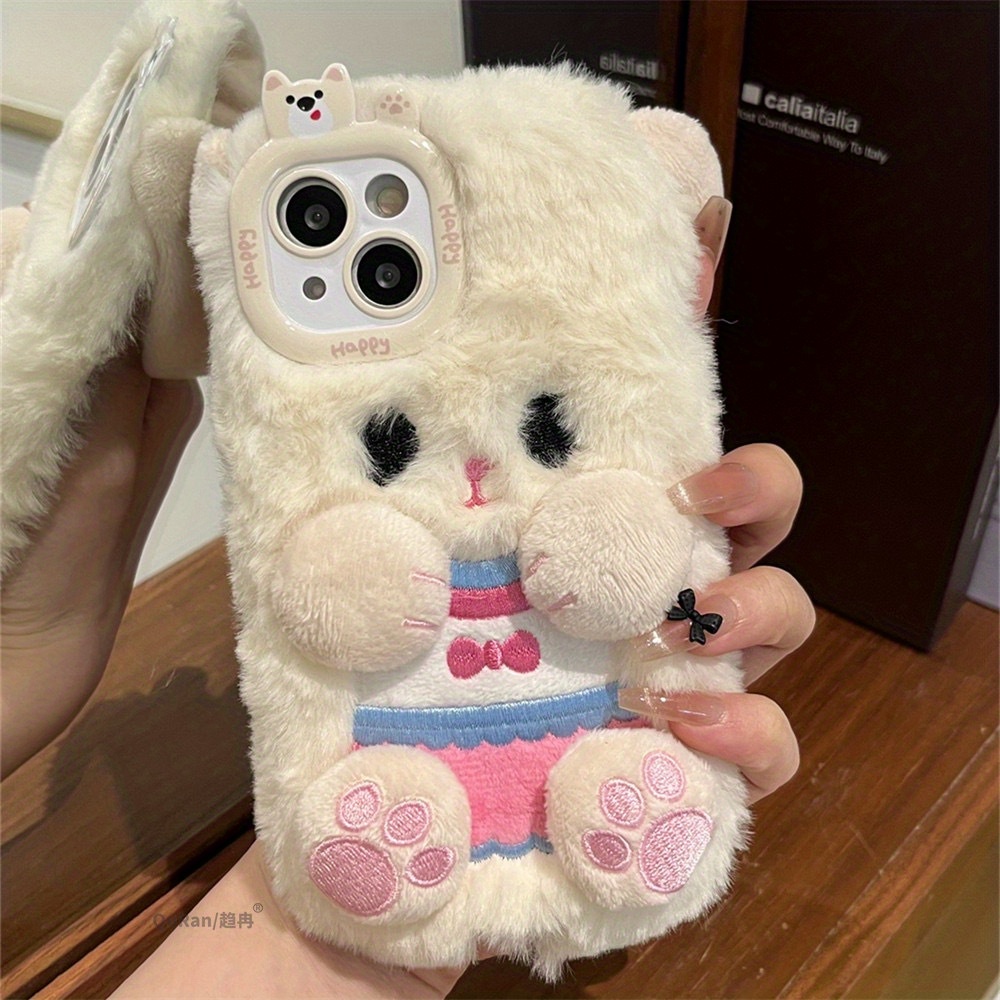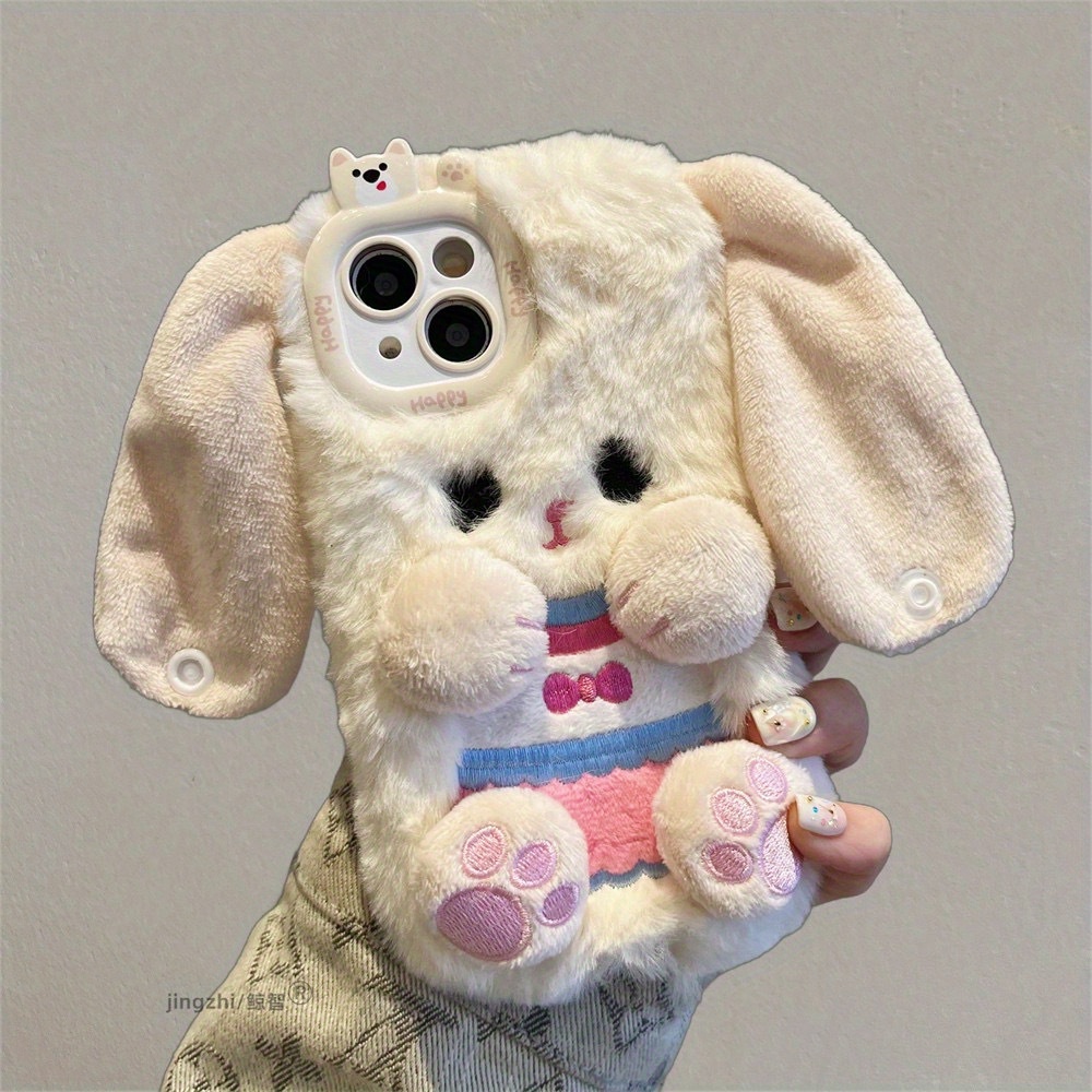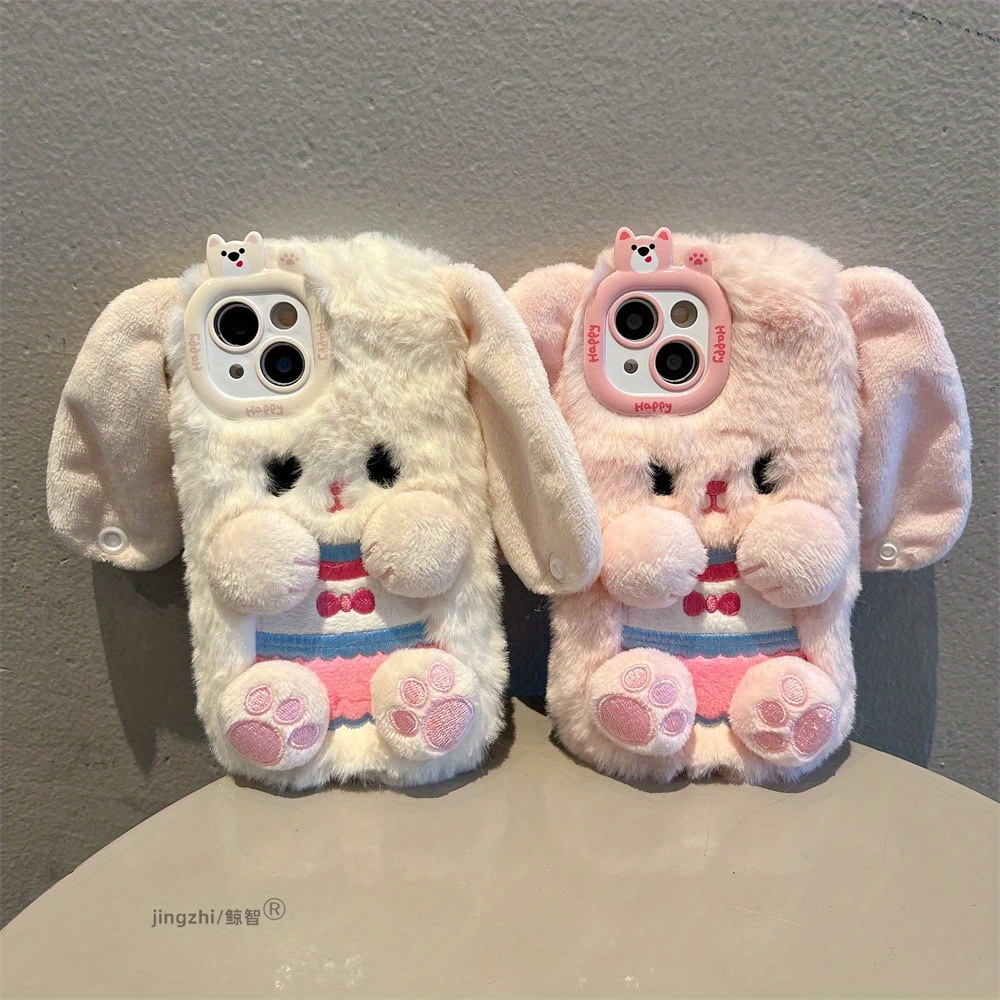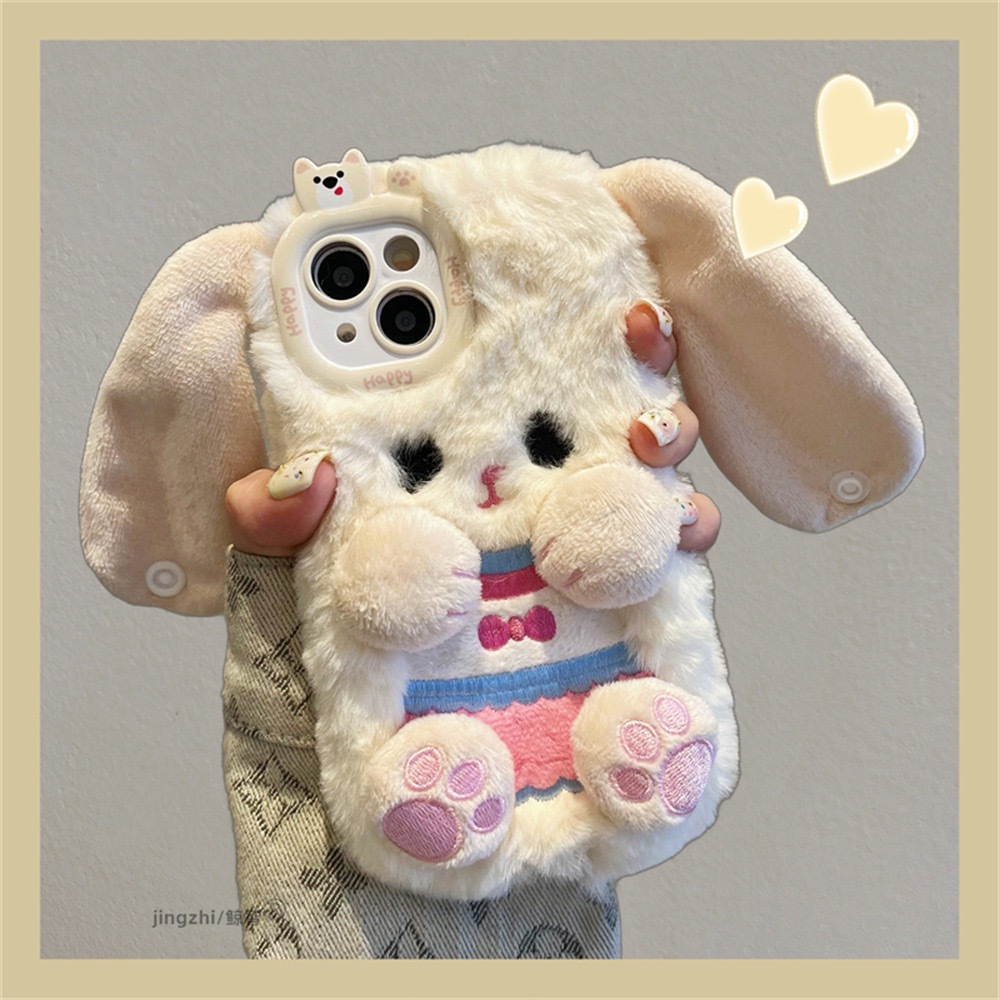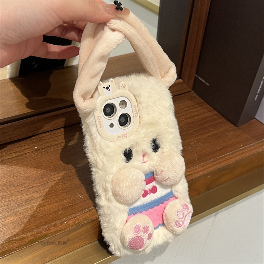 Internet Celebrity Female Model Super Hot Model Long Eared Rabbit Plush Shell Plush Cartoon Cute White ins Style Korean and Japanese for 16/15/14/13/12/11promax Mobile Phone Case iphone15 Autumn and Winter New Model 16pro Flu