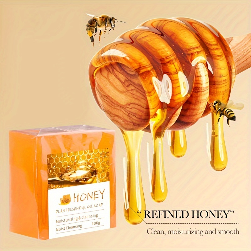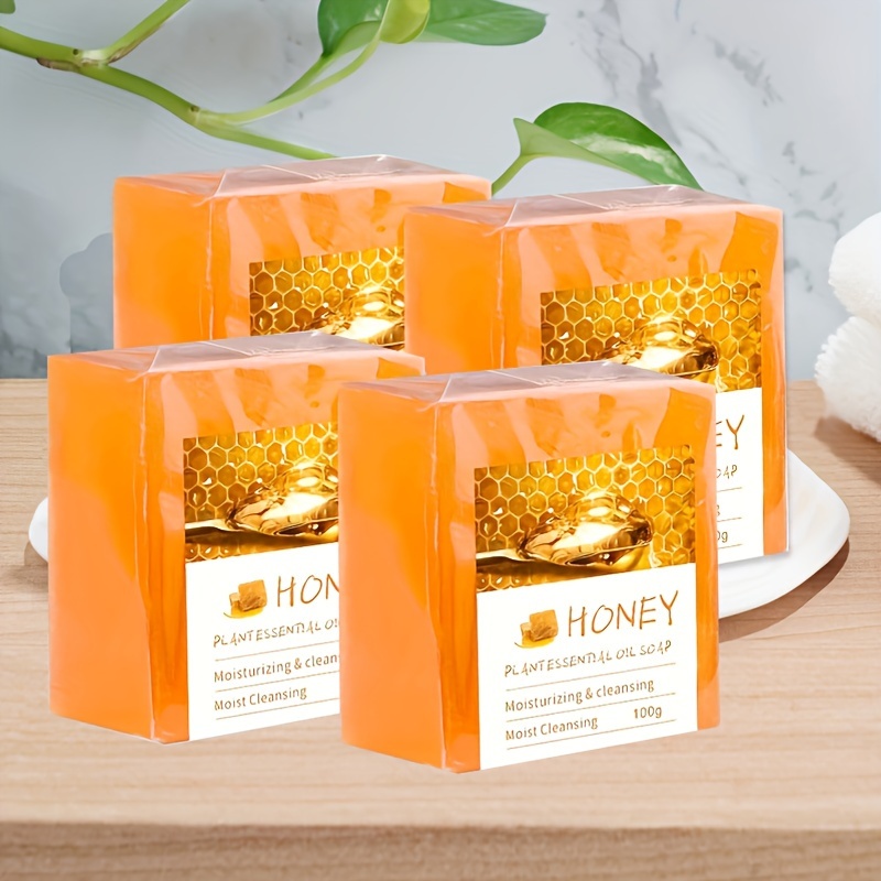 4pcs*100g Honey Essential Oil Handmade Soap Deep Cleaning and Moisturizing, Rich Foam, Suitable for Men and Women, Free Foam Net