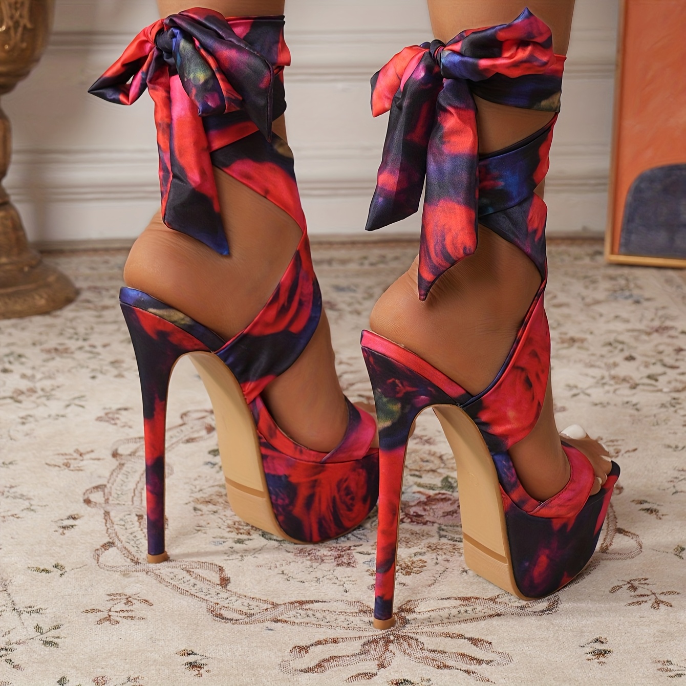 2025 New Women's Pointed-Toe Stiletto Heel Platform Pumps with Adjustable Ankle Strap - Floral Print Fabric Upper, Ultra-High Heels for Fashion Shows & Special Occasions, Party Footwear, Elegant Design, Highquality Finish, Dr