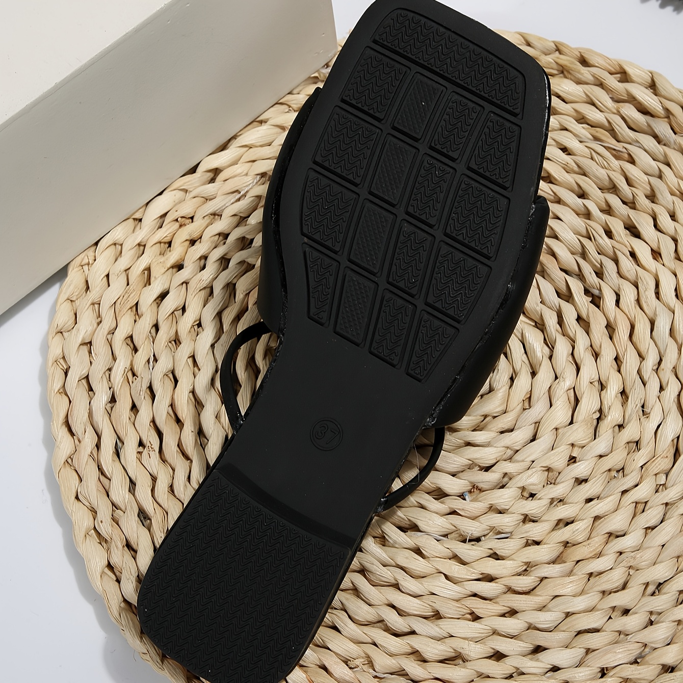 Women'S Black Square Toe Slip-On Sandals with Large Bow Detail - Stylish Summer Flat Heels for Outdoor and Indoor Wear, Casual Footwear | Stylish Flat Heels | Comfortable Footwear