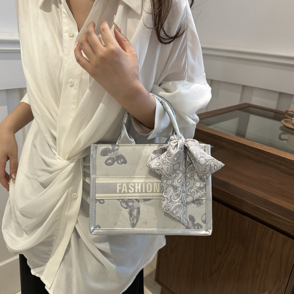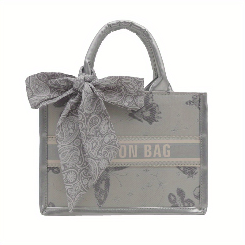 Large Capacity Fashion Letter Print Tote Bag with Scarf Bow - Stylish Synthetic Leather Shoulder Bag for Women, Floral Pattern, Zip Closure, Perfect for Commuting & Everyday Use, Large Tote Bag
