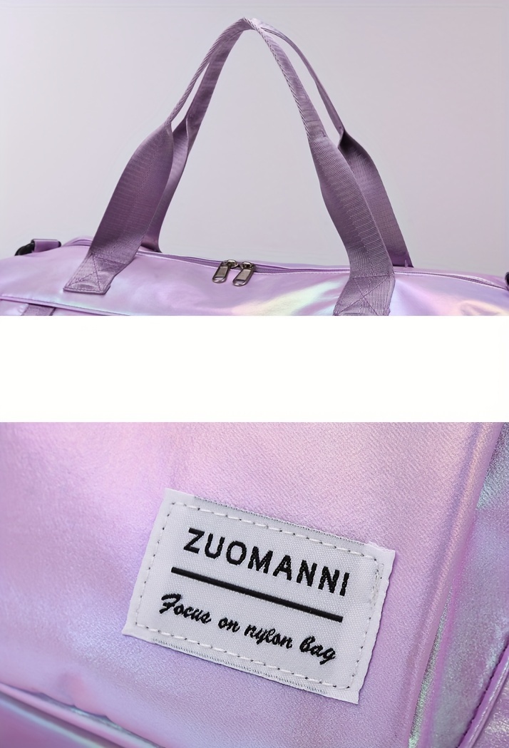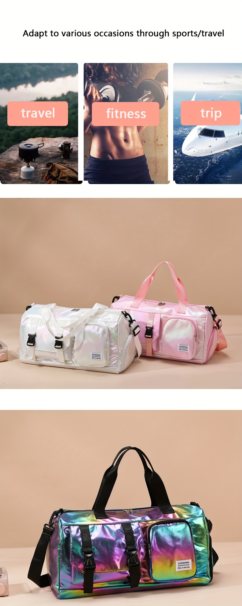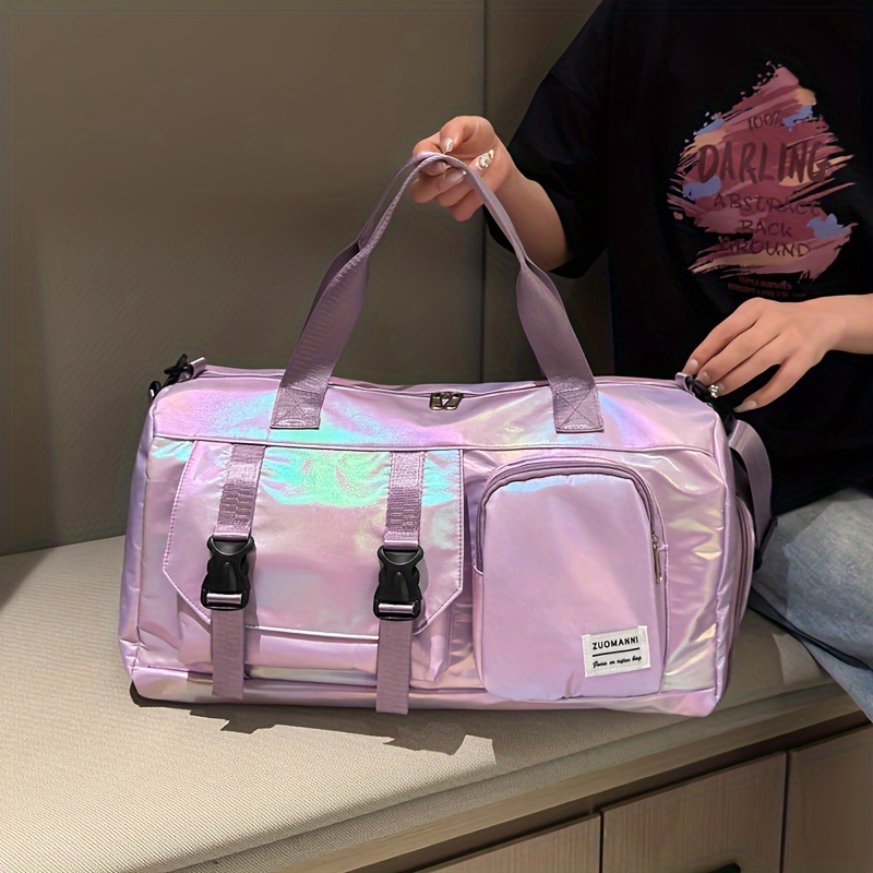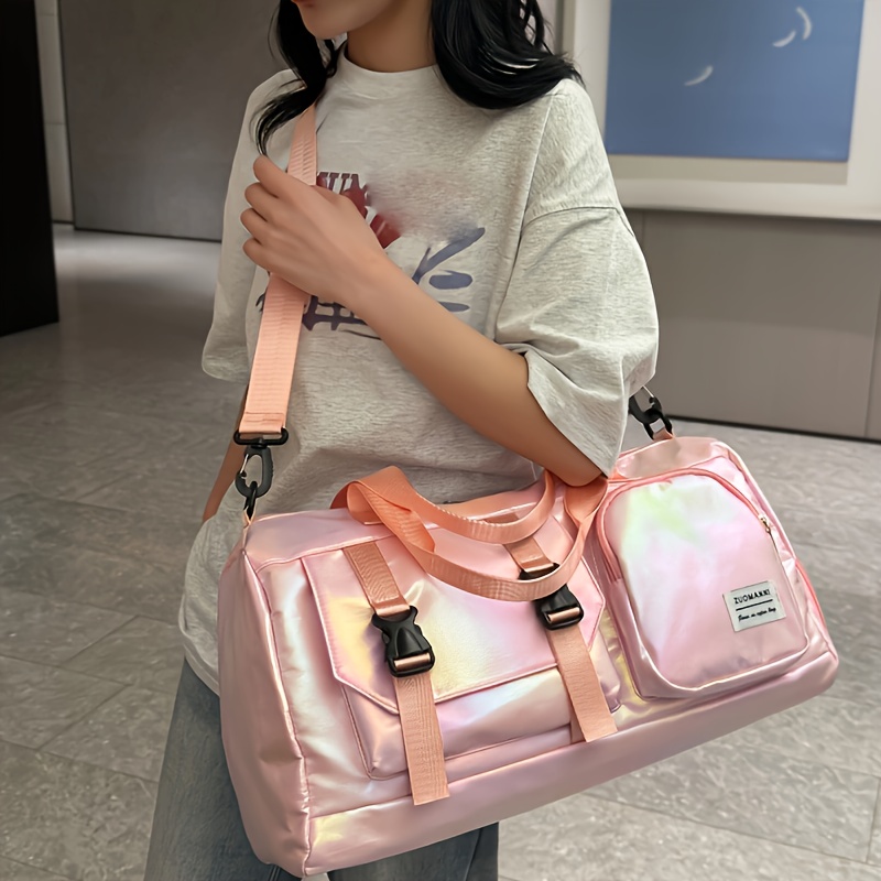 Large Capacity Women'S Nylon Travel Duffel Bag - Pink Iridescent Weekender Gym Tote with Shoe Compartment, Shoulder Strap & Multiple Pockets - Versatile Sports & Fitness Carry-On