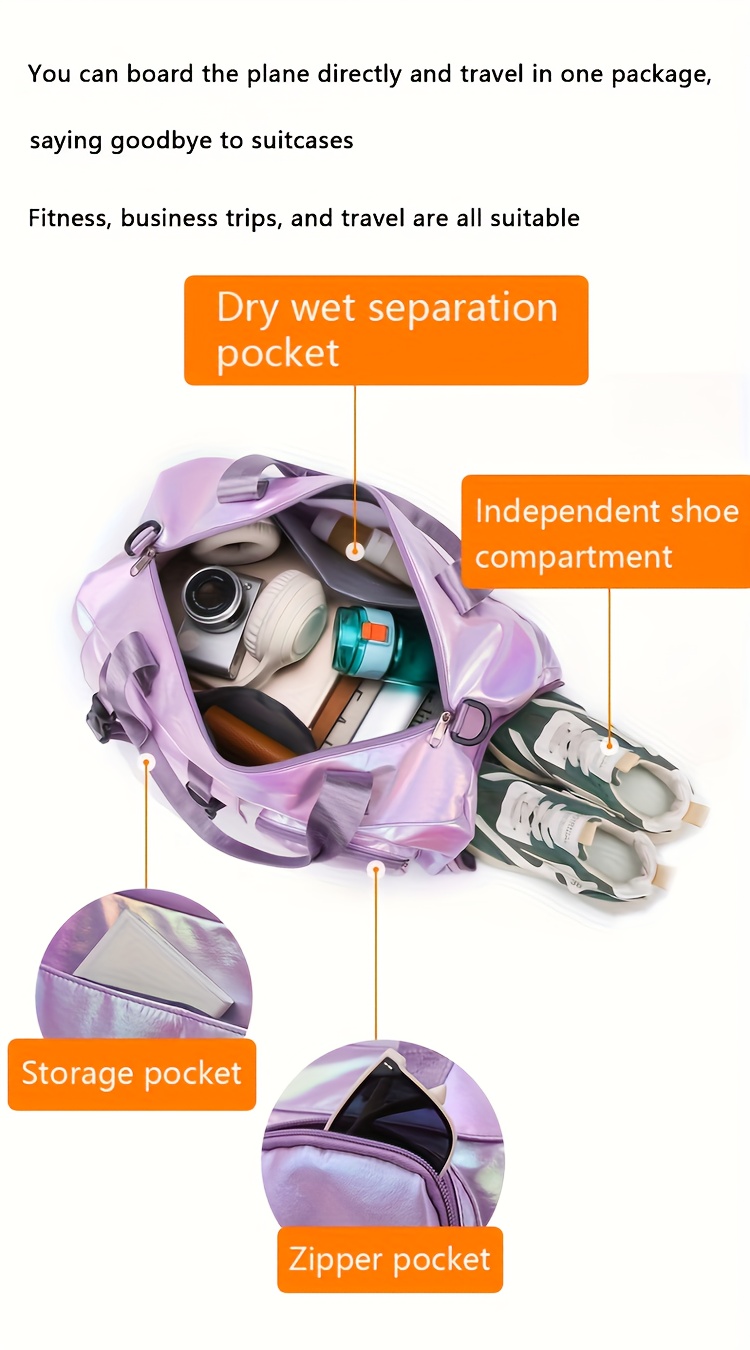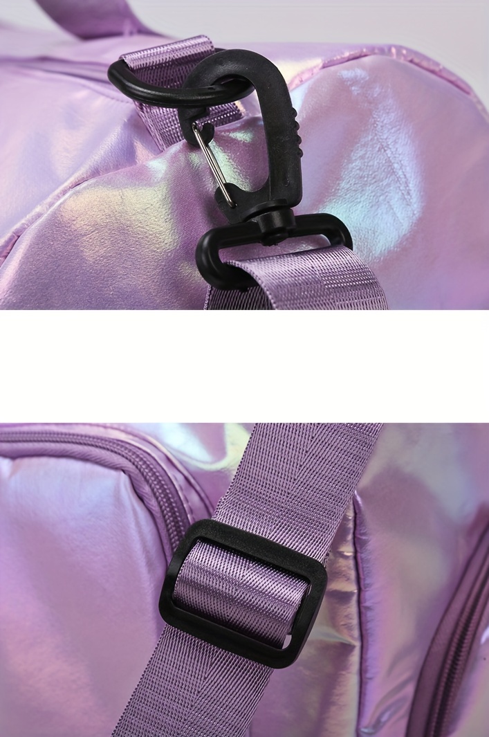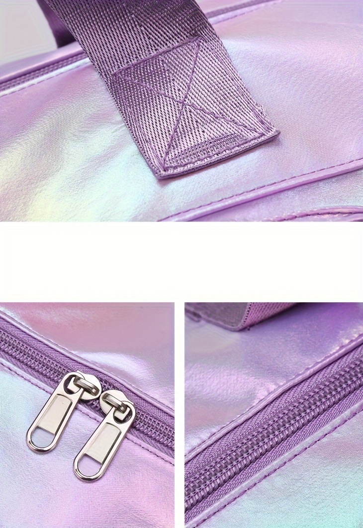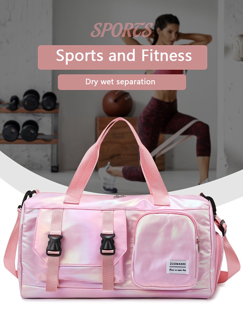 Large Capacity Women'S Nylon Travel Duffel Bag - Pink Iridescent Weekender Gym Tote with Shoe Compartment, Shoulder Strap & Multiple Pockets - Versatile Sports & Fitness Carry-On