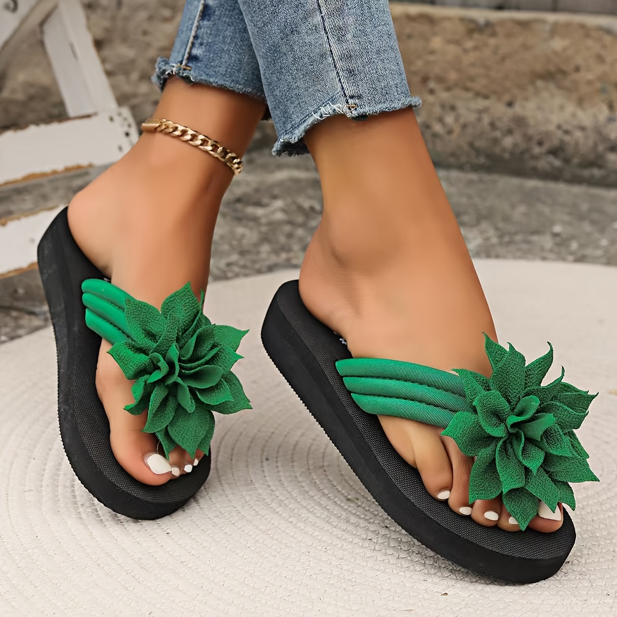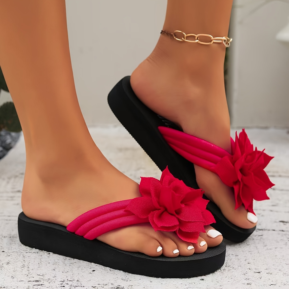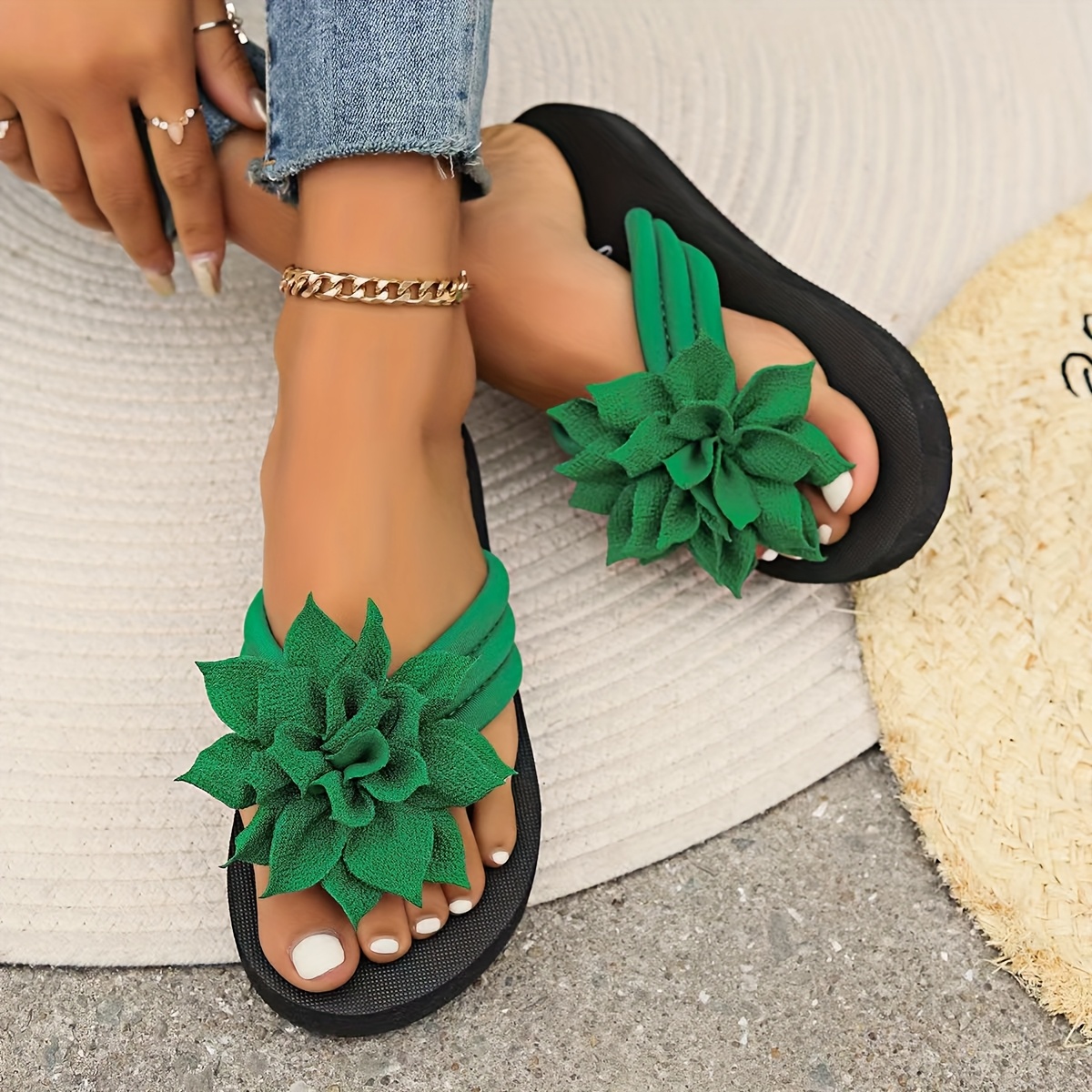 Women'S Bohemian Flip Flops - Black, Red, Green & Pink with Floral Accents, Casual Sandals for Beach, Pool & Everyday Wear, All-Season Comfort, Rubber Sole, Slip-On Style, Casual Footwear | Bohemian Style | Rubber Sole Sandal