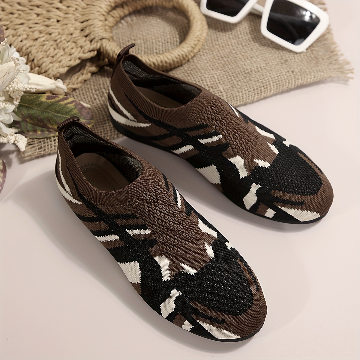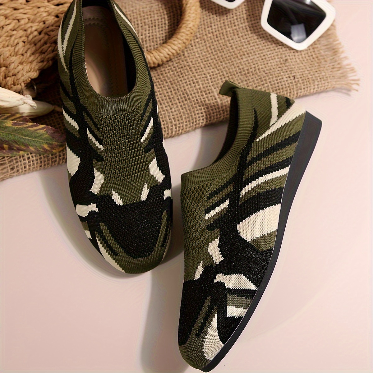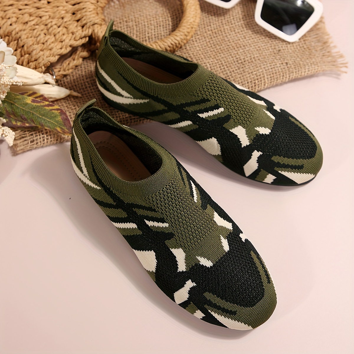 Women's Camouflage Pattern Flat Shoes, Breathable Knit Slip On Outdoor Shoes, Lightweight Low Top Shoes