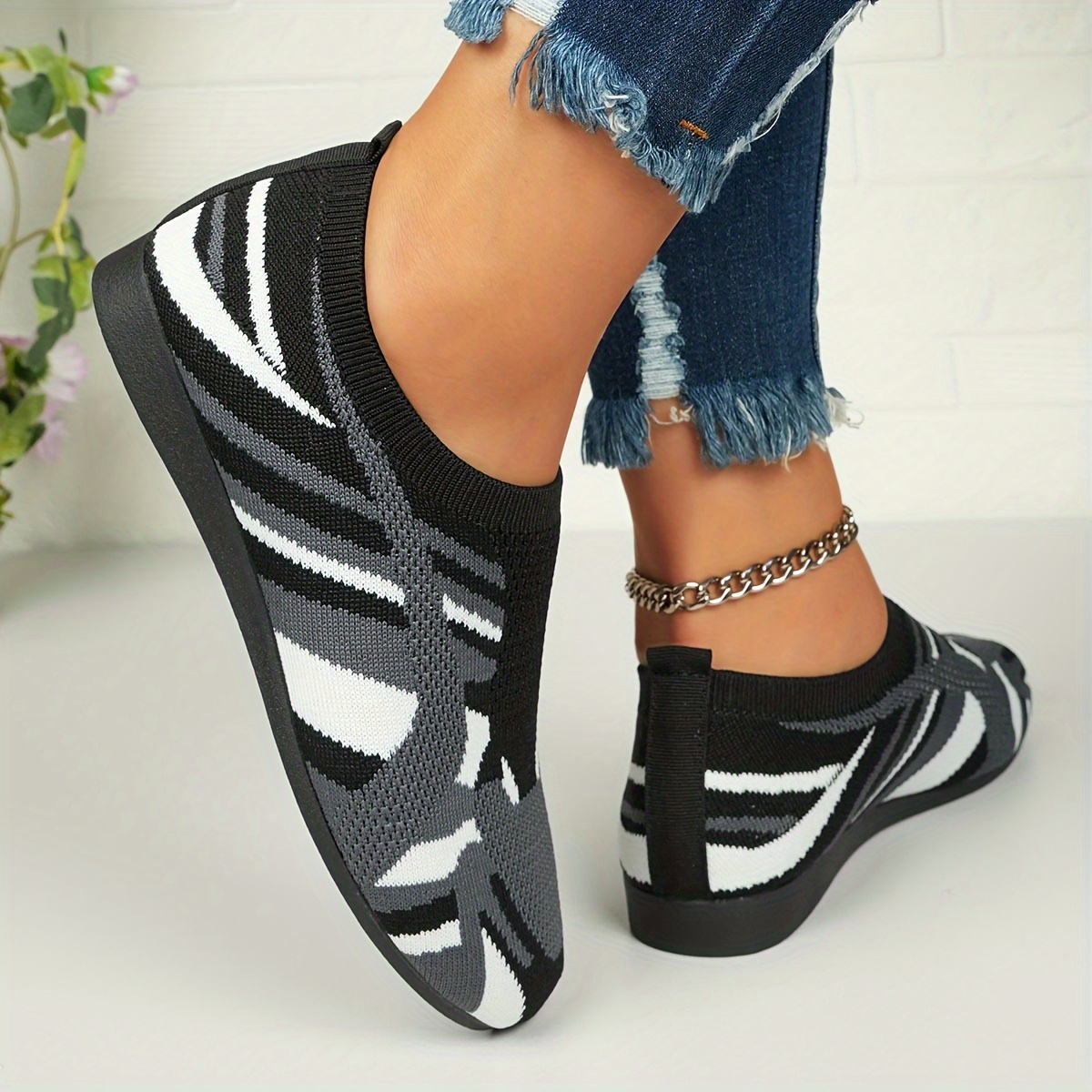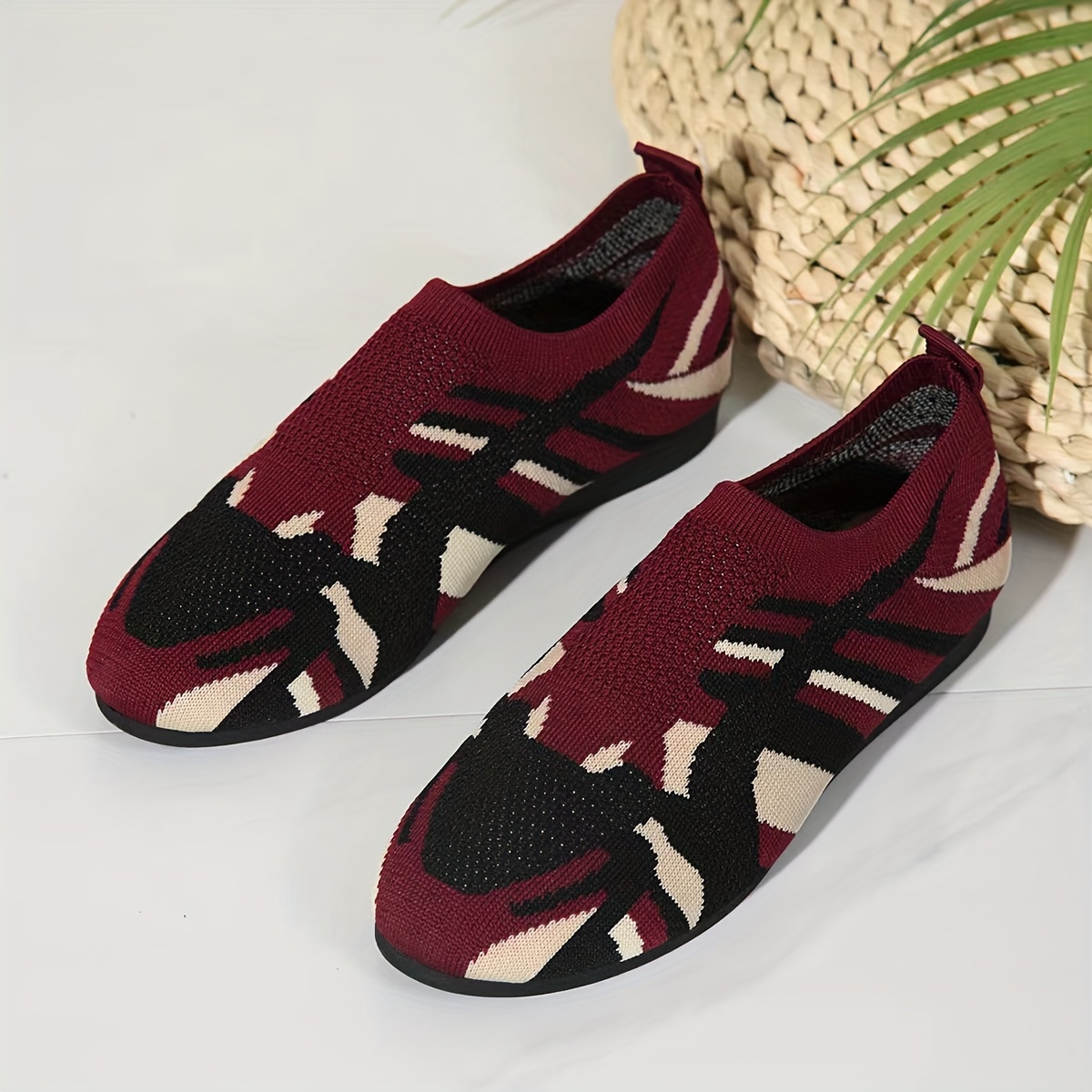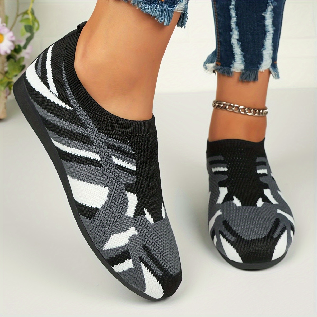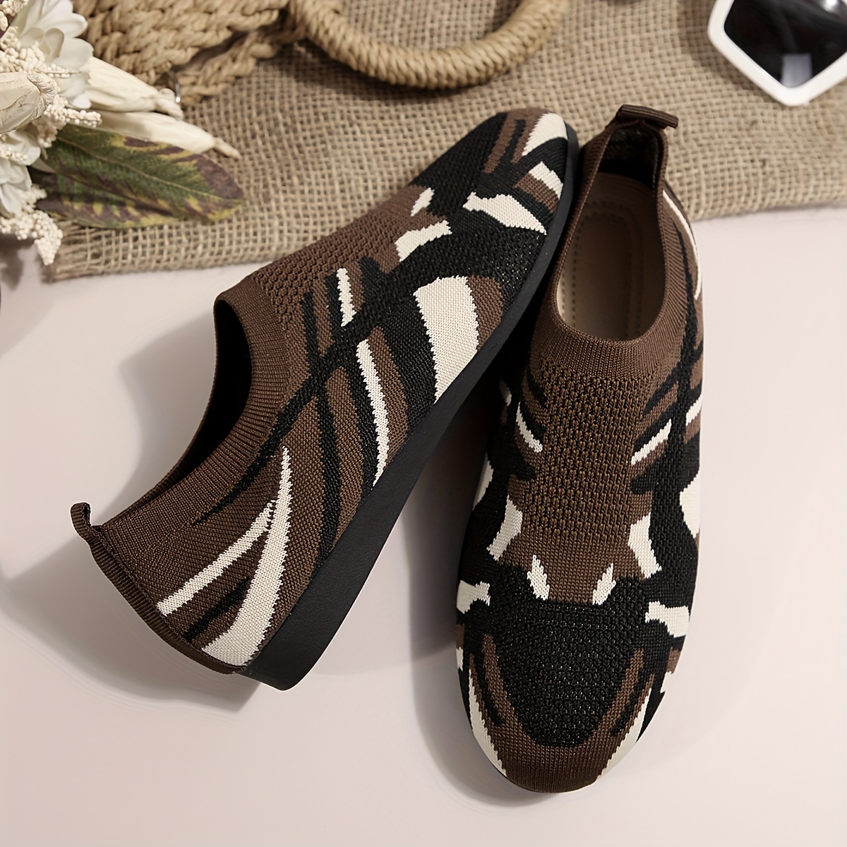 Women's Camouflage Pattern Flat Shoes, Breathable Knit Slip On Outdoor Shoes, Lightweight Low Top Shoes