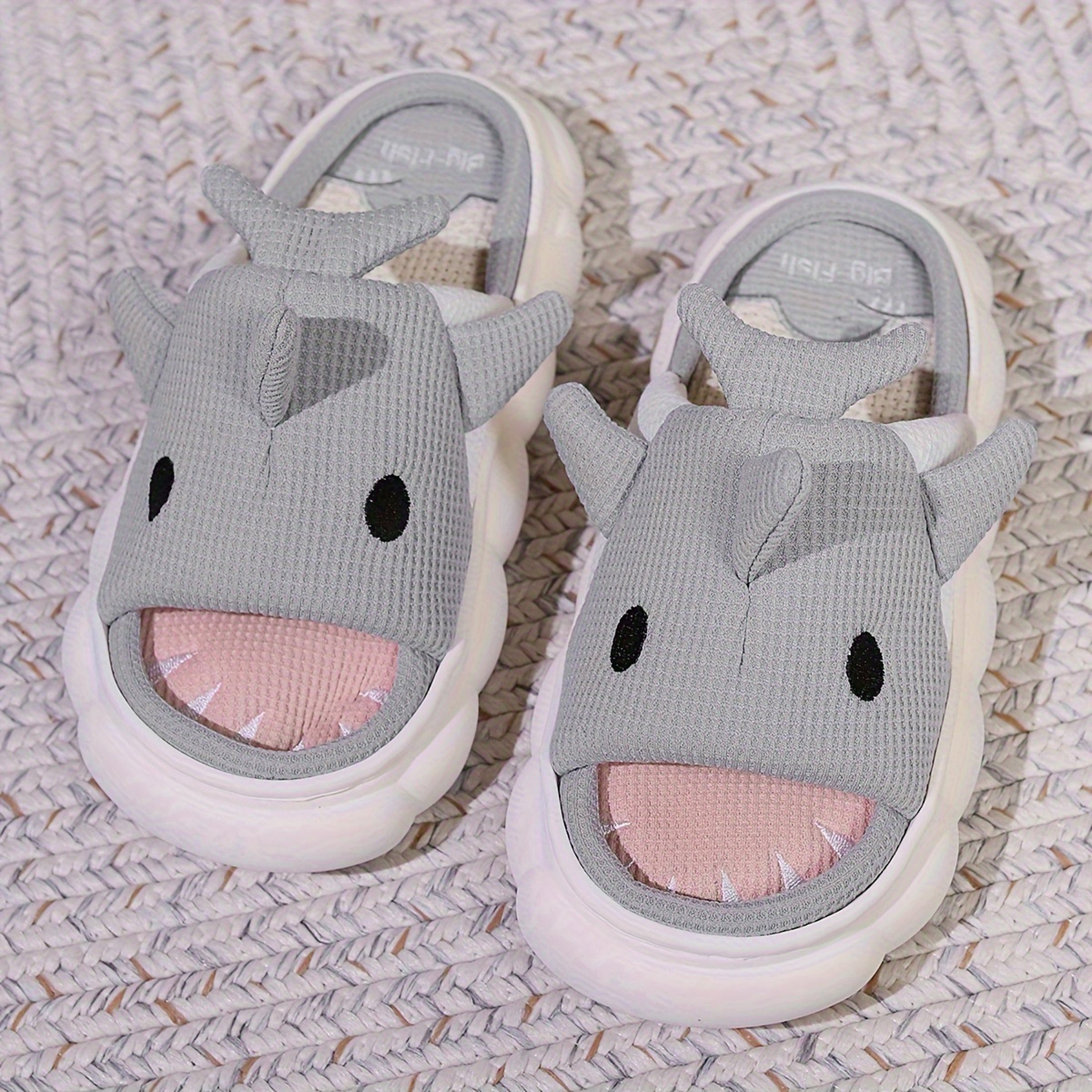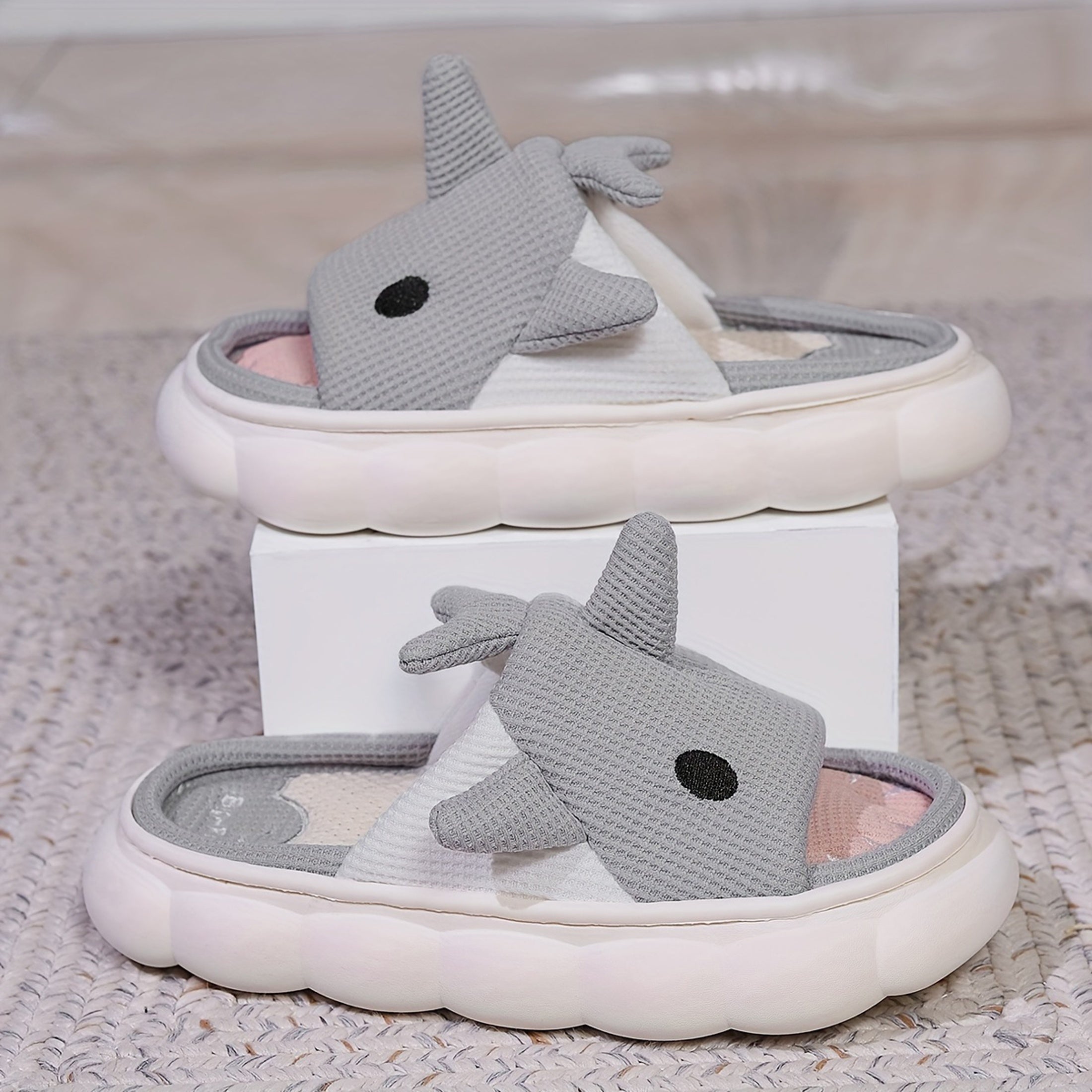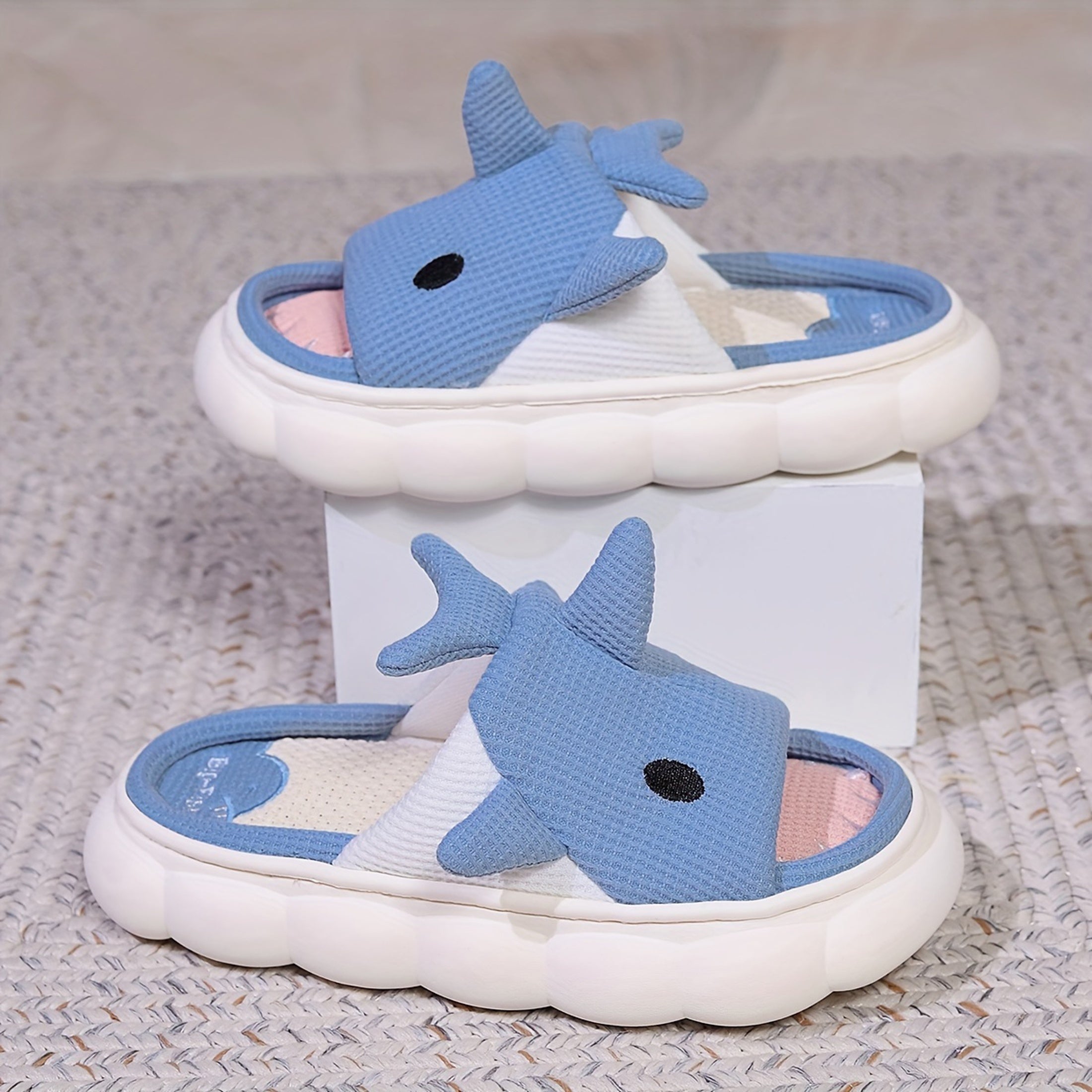 Women's Cartoon Shark Graphic Design Home Slippers With Linen Uppers, Lightweight Slip On Indoor Shoes, Spring Summer And Autumn