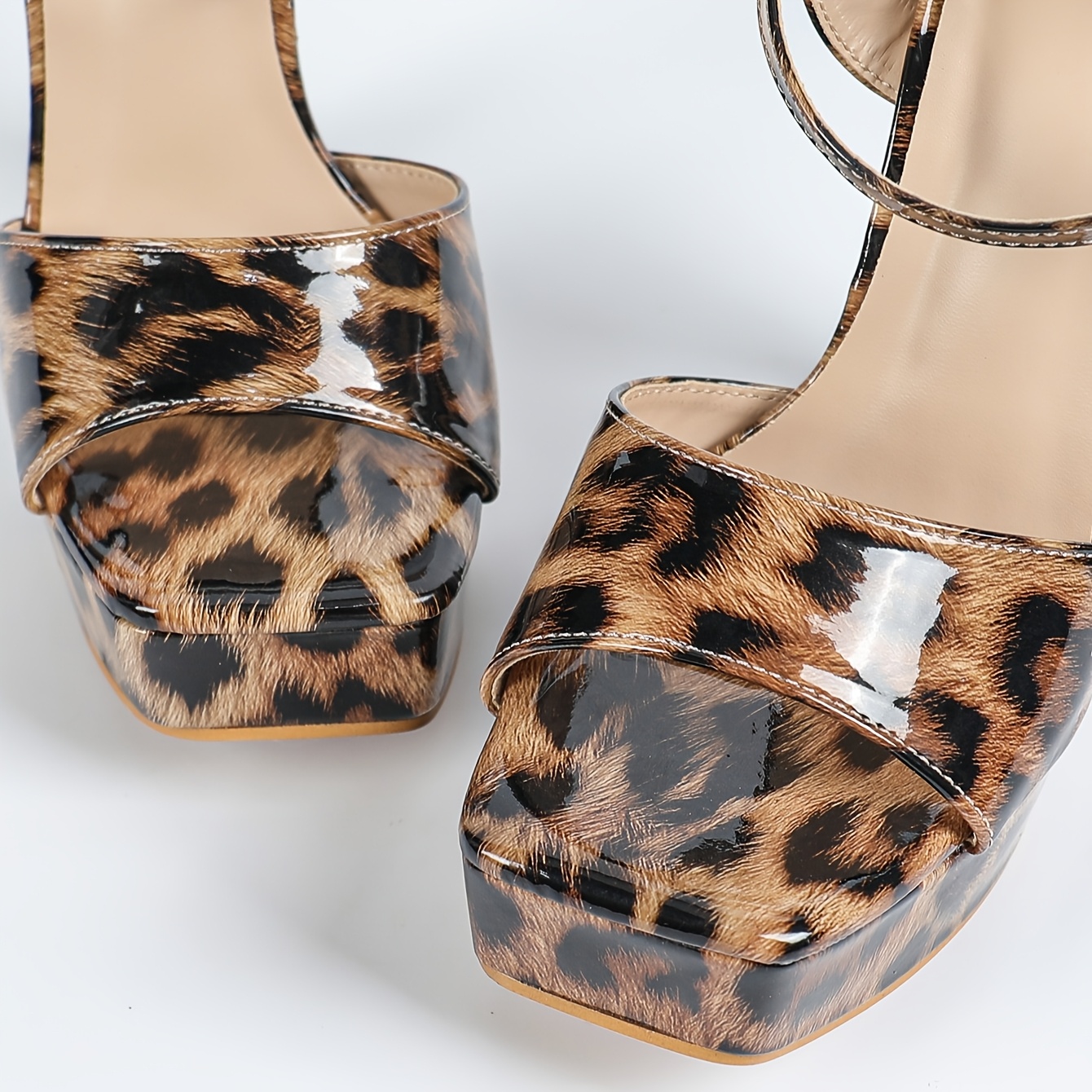Women's Leopard Print High Heels, Square Toe Buckle Strap Pumps, Fashionable Party Dress Shoes