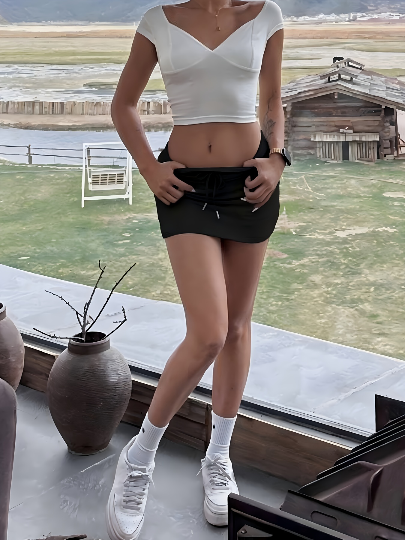 Women's Elegant Gray Mini Skirt with Drawstring Waist - High Waist, Bodycon Fit, Stretchy & Comfortable, Machine Washable - Perfect for Spring/Summer/Fall Casual Sportswear