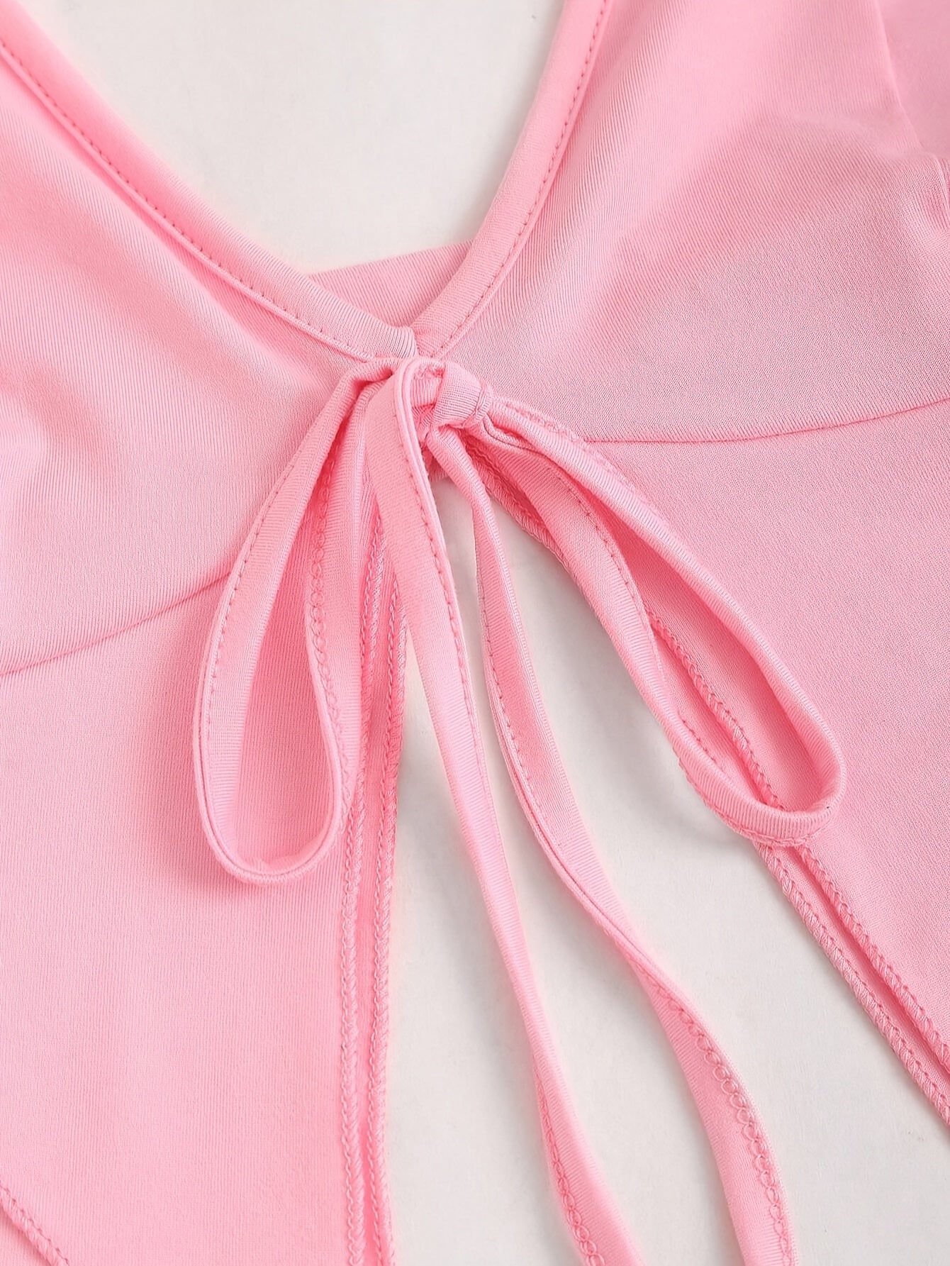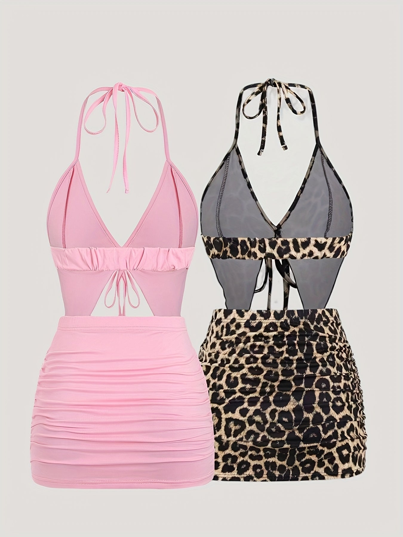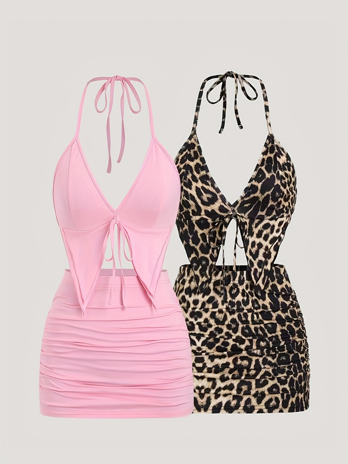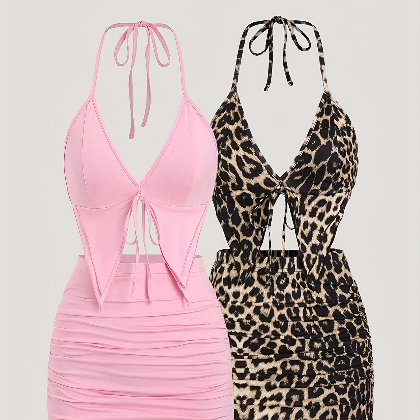 1set Women'S Casual Halter Top and Skirt Set - Polyester Woven, Solid Color, Backless Detail, Irregular Hem - Spring/Summer Collection