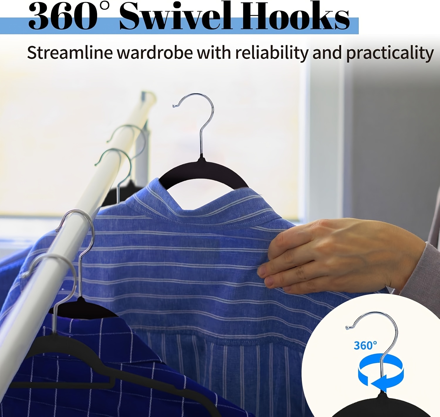 Functional Design - Features a 360° swivel hook meets different hanging angle needs, good for easy clothing sorting. Shoulder notches can be used to hang clothes with thin shoulder straps