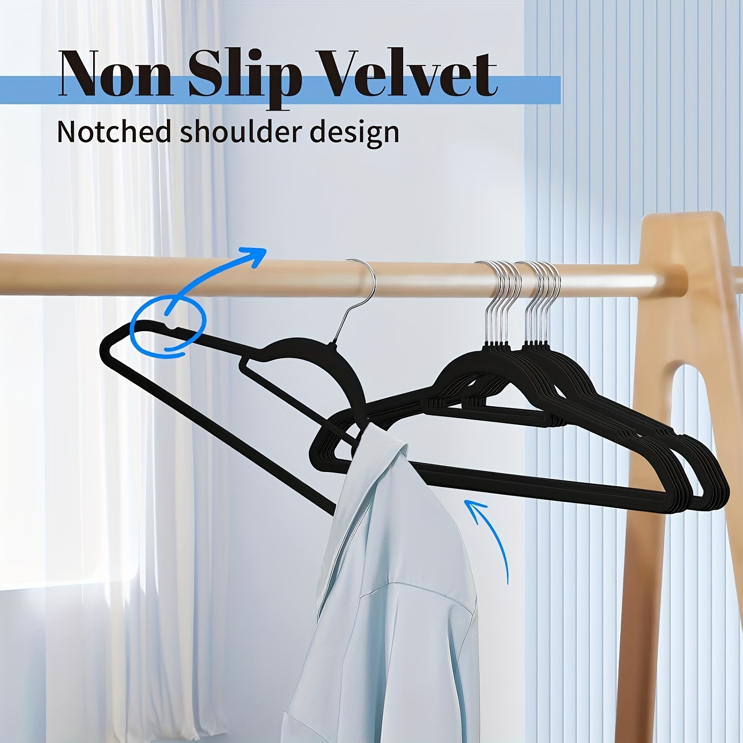 Velvet Non-Slip Surfa - Dress up your closet with our hangers coated in rich, plush velvet. This premium material not only adds a touch of elegan but also prevents your finest silks and softest cashmeres from slipping, ensuring they stay just as you hung them