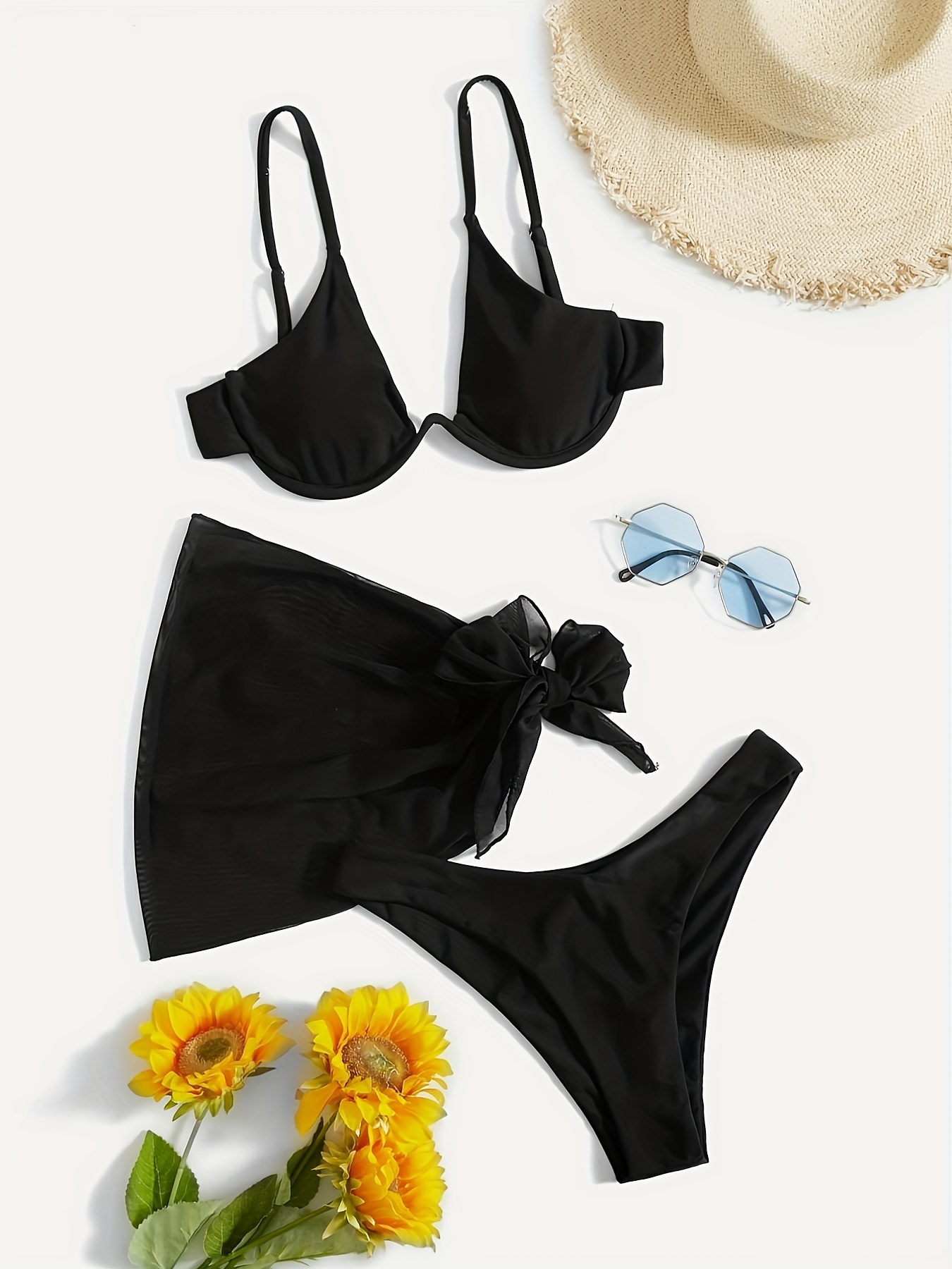 · Versatile 3-piece set: Bikini top, bottom, and mesh cover-up included