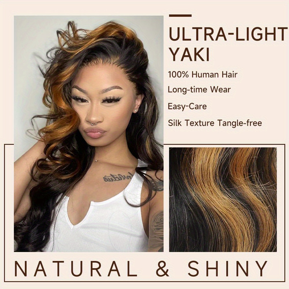 28 Inch 1B-30 Brown Ombre Human Hair Lace Front Wig with 13x4 HD Lace - Body Wave 180% Density Glueless Wig for & Men, Elegant Natural Look, Versatile Hairpiece | Sophisticated Hairstyle