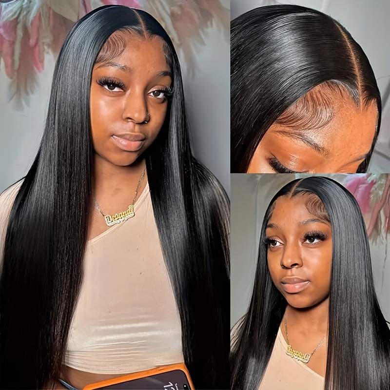 4X4 HD Lace Closure Wig - 100% Human Hair, No Glue Needed, Pre-Plucked Straight Hair, 200% Density, Elegant Style for Women, Perfect for Role-Playing And Casual Attire, Everyday Hairpiece | Natural Appearance | Natural Textur