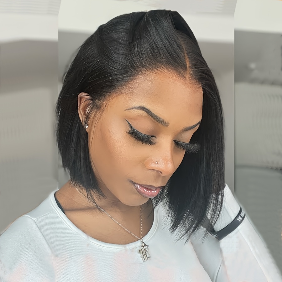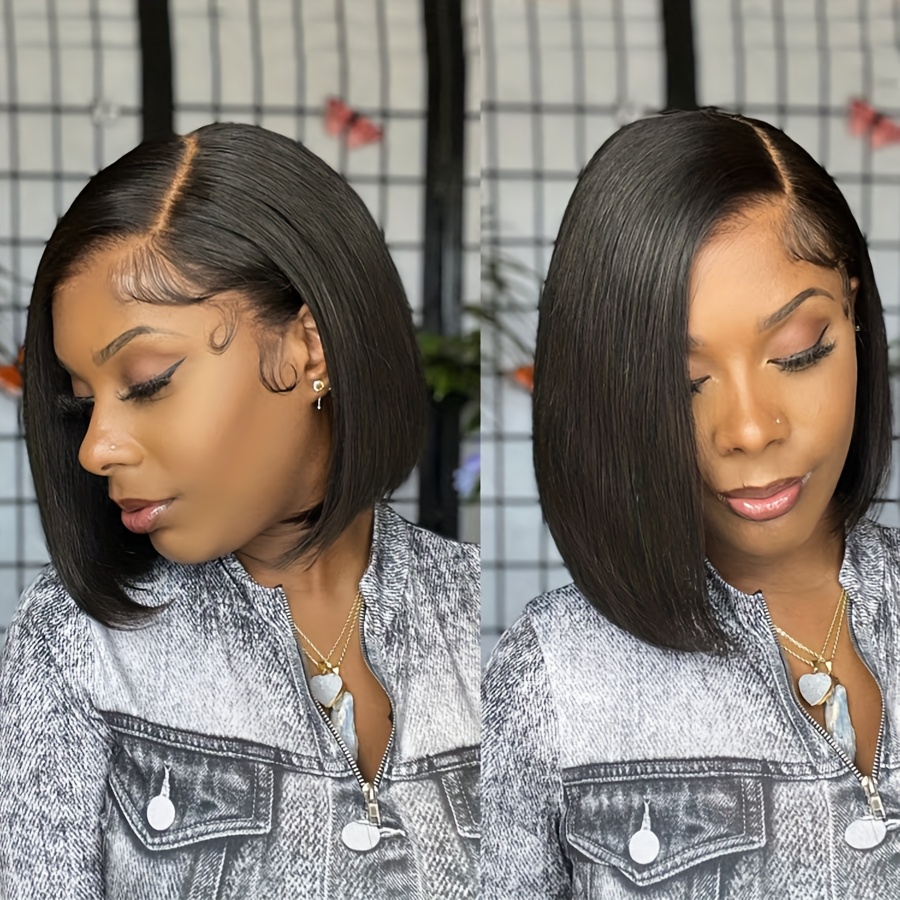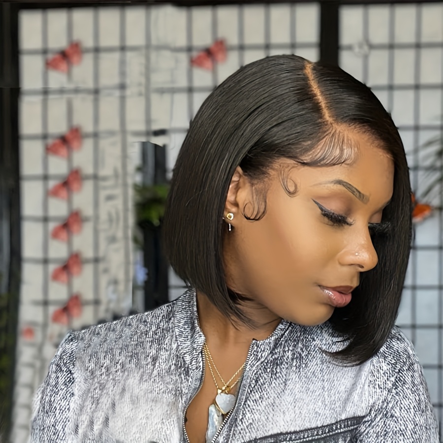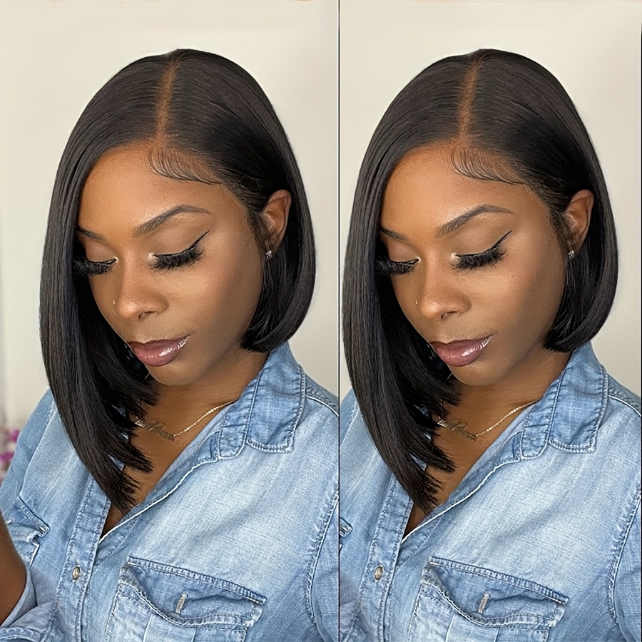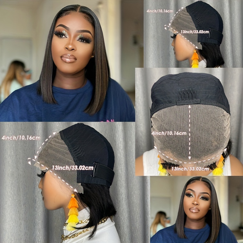 Glueless 13x4 Lace Frontal Wig Brazilian Human Hair Straight Bob Cut 150% Density Preplucked Natural Hairline & Bangs No Maintenance Elegant Wigs for Women All Ethnicities Every Occasion, Hair Wig, Versatile Hairpiece, Sleek